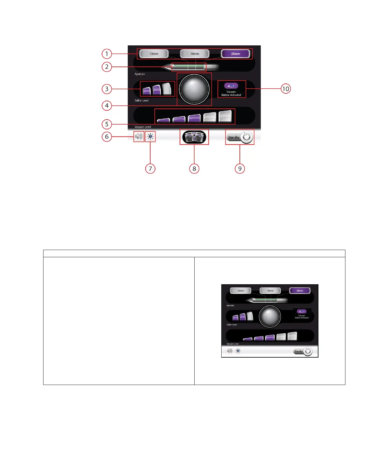 5. Vacuum Level Buttons and Status