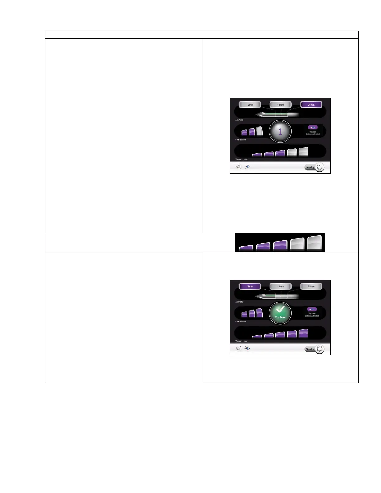 vacuum level bar desired. Then touch the Confirm