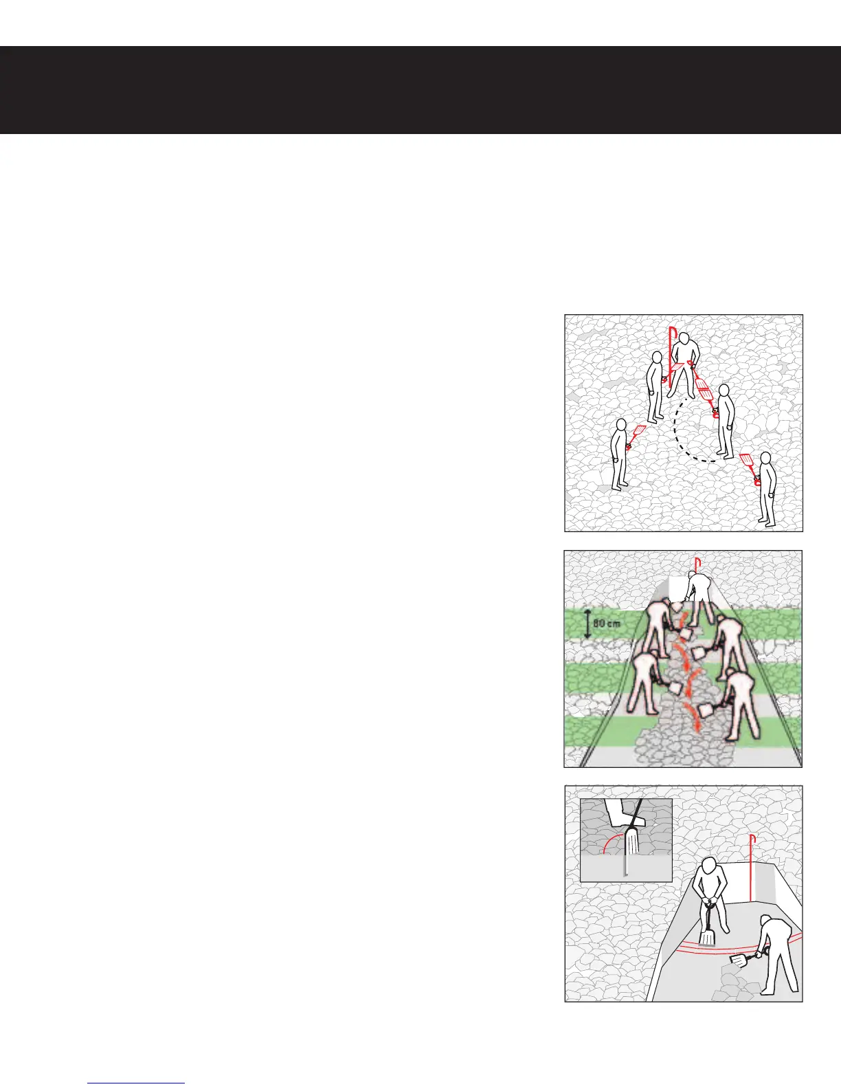 • The first two rescuers are in a distance of one shovel