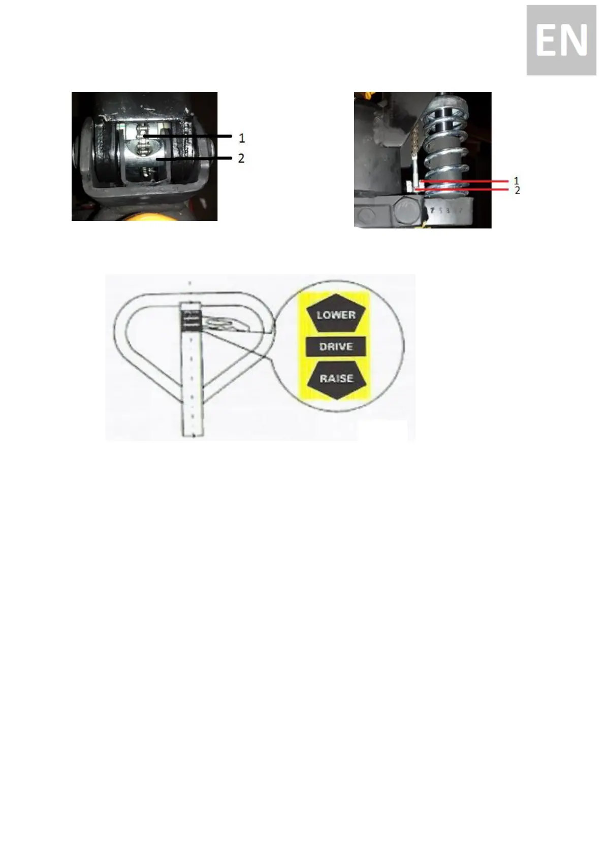 adjusting bolt (58) clockwise until pumping action does not raise the forks and the DRIVE position