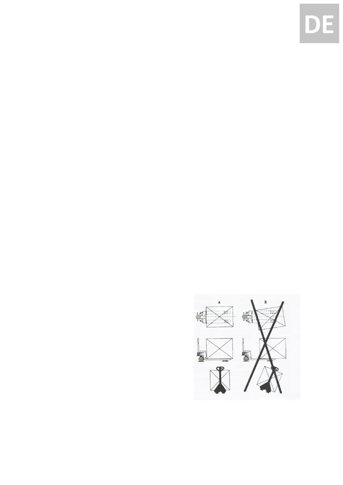 unter die Palette/Ware bis die Gabeln, in voller Länge, die Palette/Ware vollständig unterstützen.