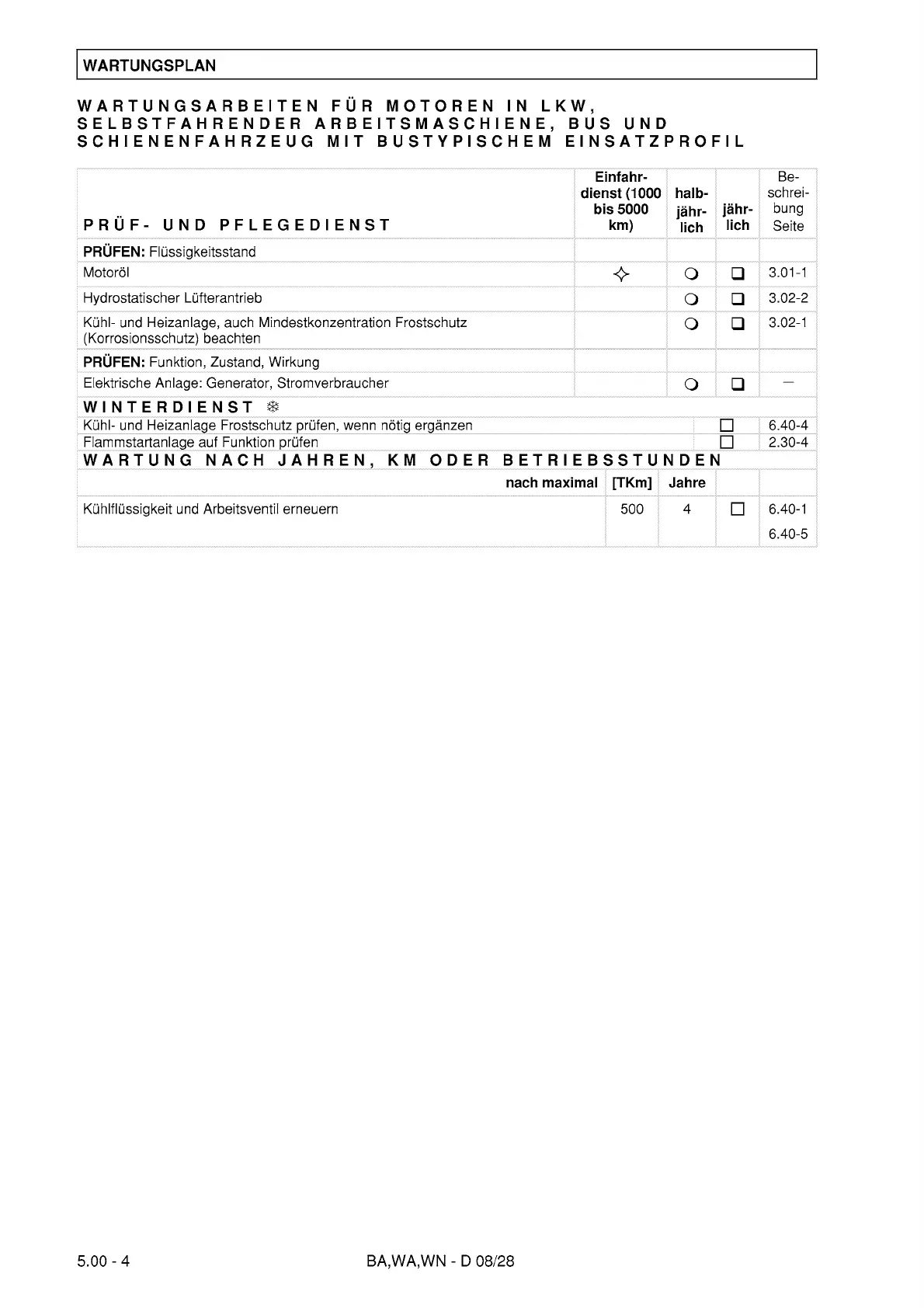 Man D 0826 LF - Major Component Fill Volumes; Diesel Engines Fill Volumes
