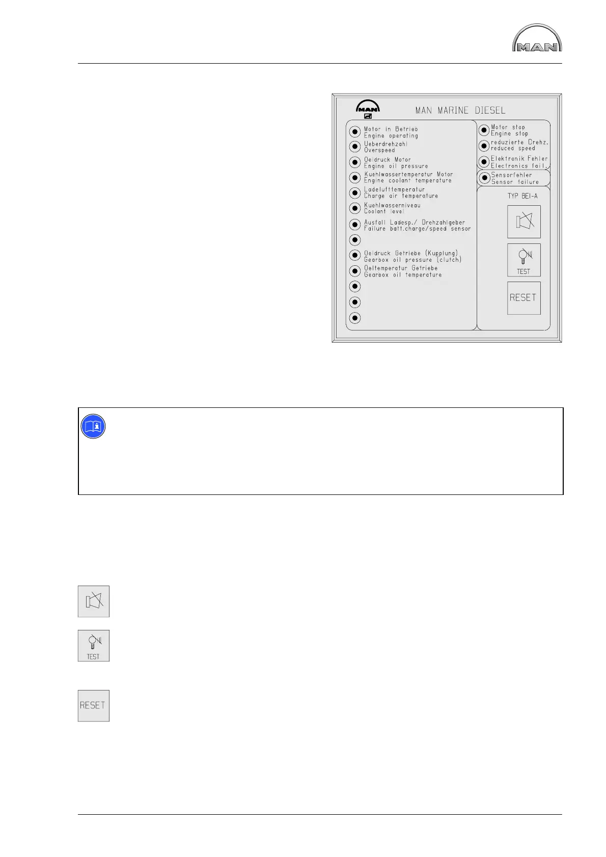 The engine monitoring system BE1 warns