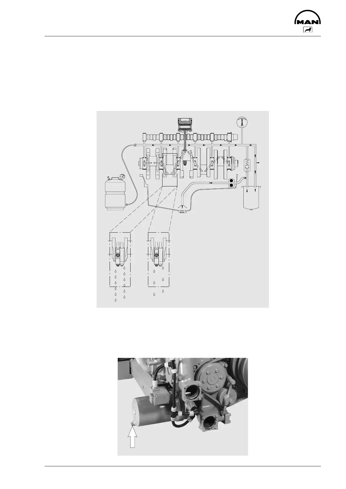 The pressurisation container is connected up to the engine oil circuit at the oil filter head (screw plug, arro-