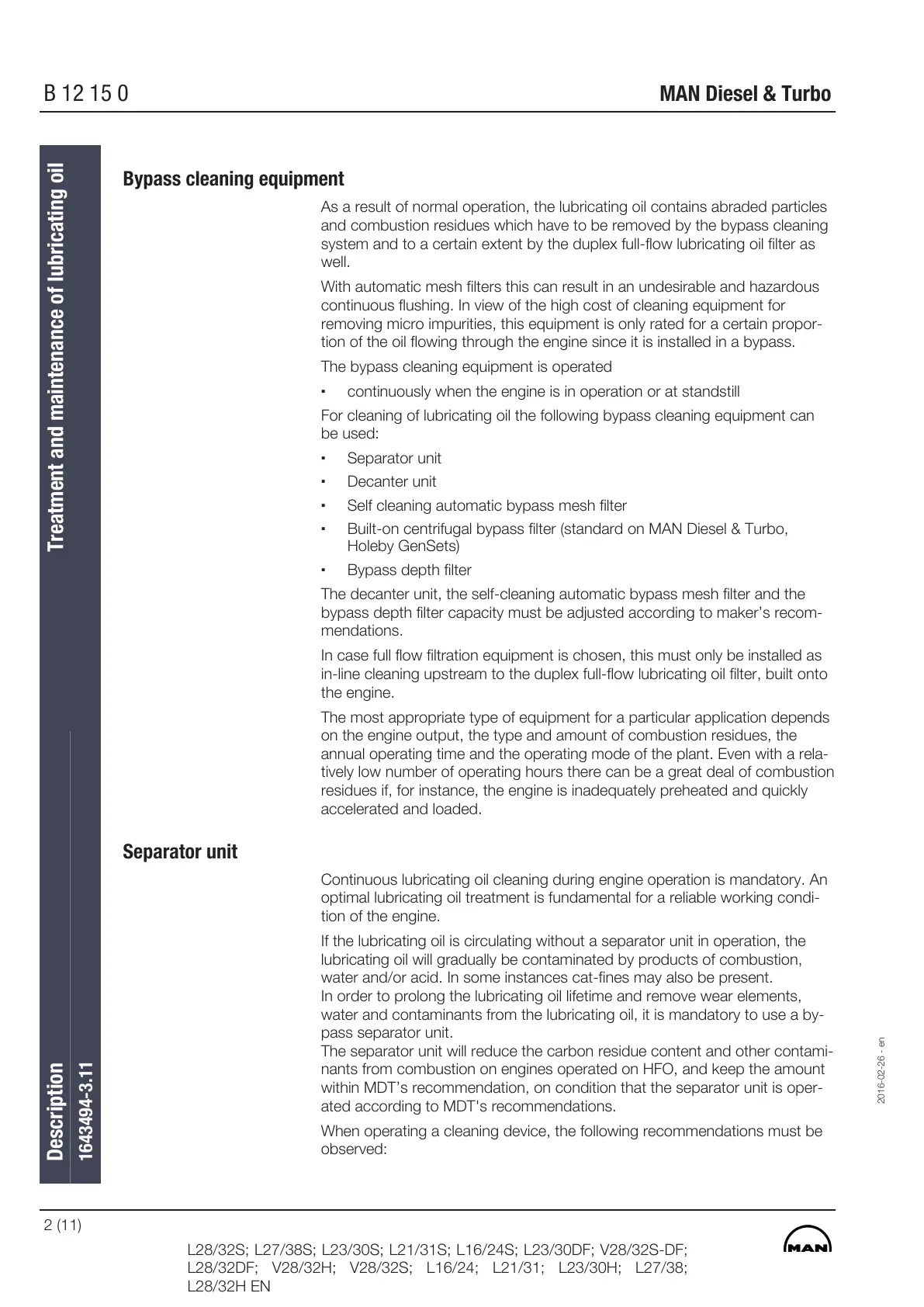 Built-on centrifugal bypass filter (standard on MAN Diesel & Turbo,