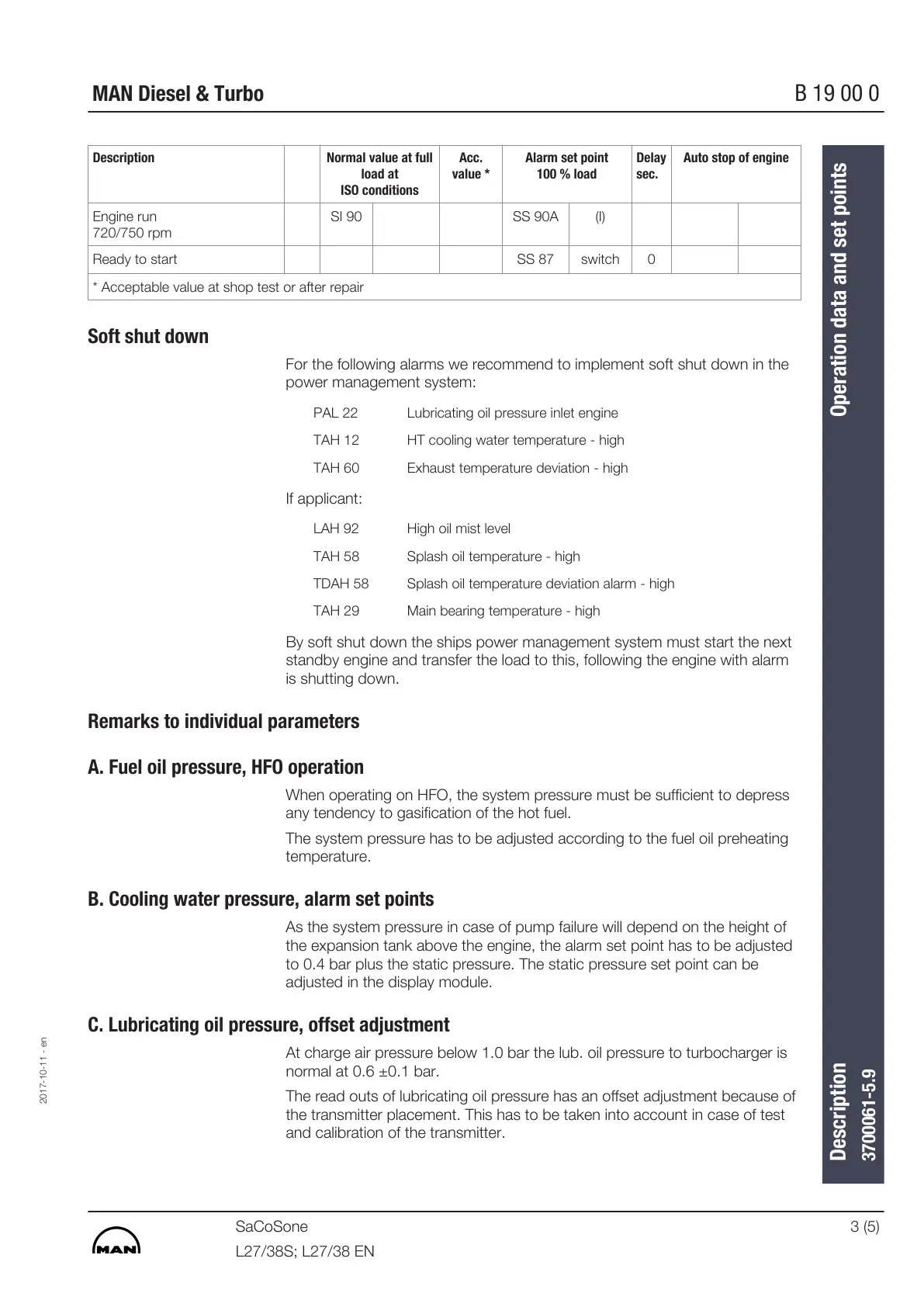 For the following alarms we recommend to implement soft shut down in the
