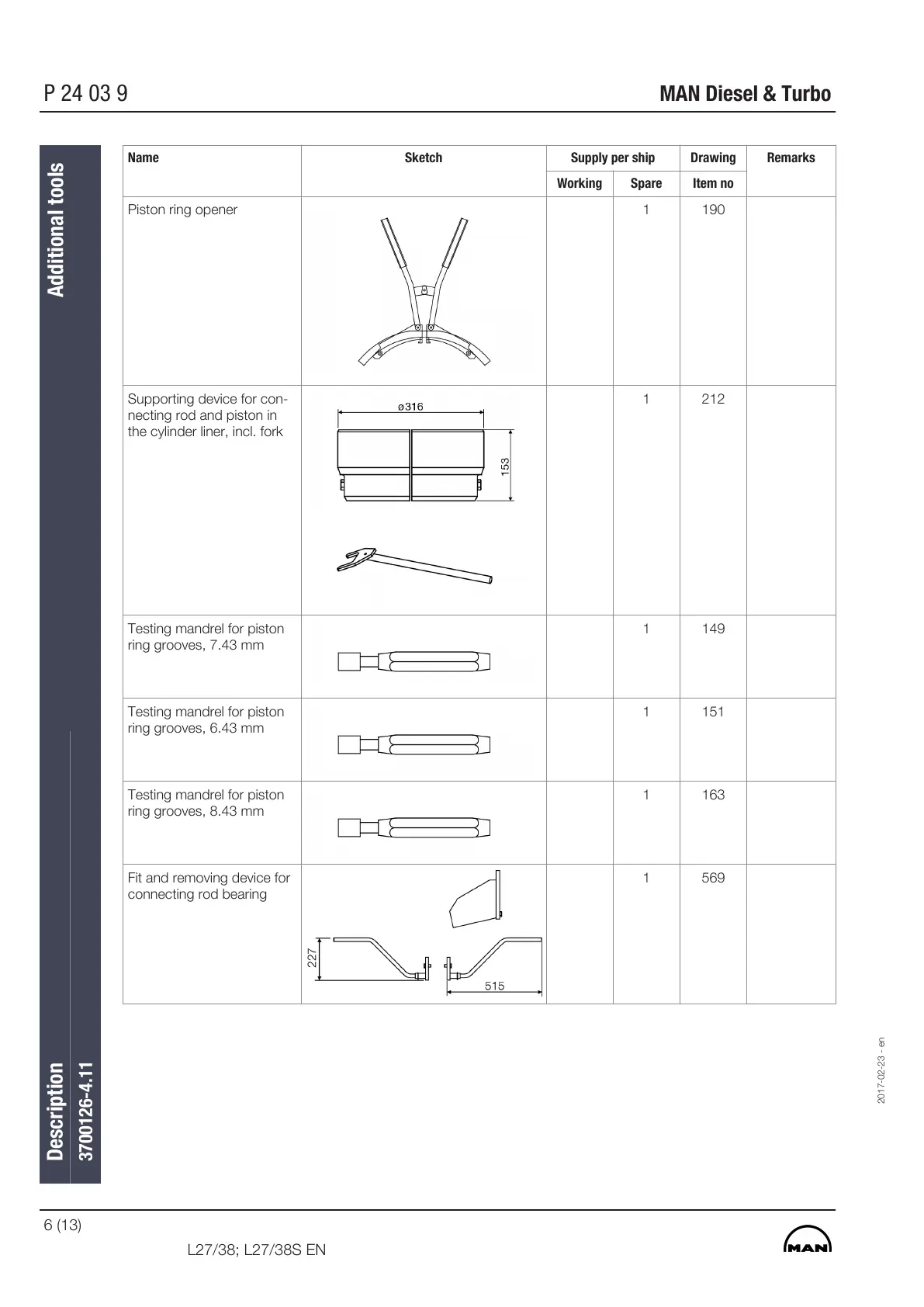 Name Sketch Supply per ship Drawing Remarks