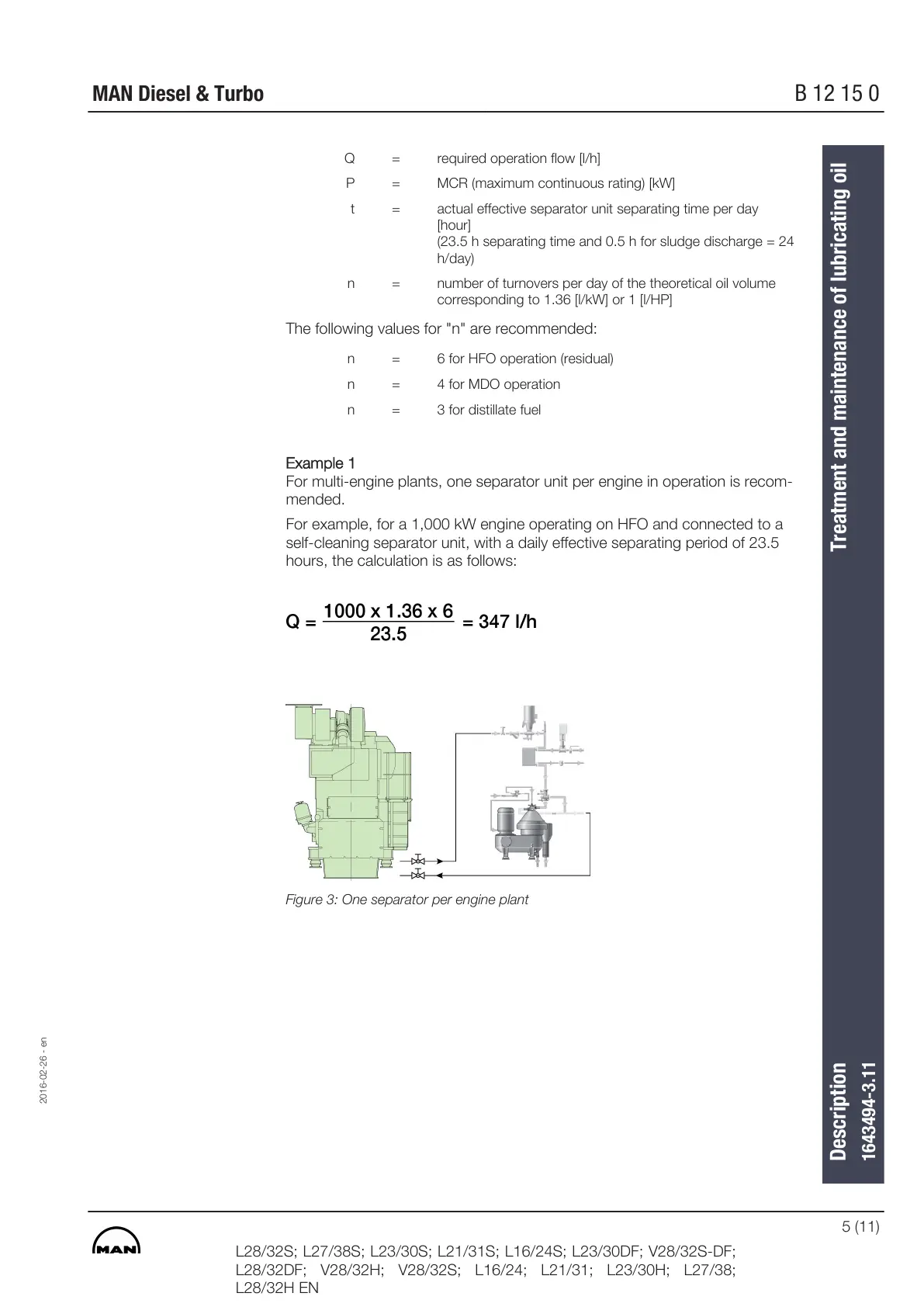 For multi-engine plants, one separator unit per engine in operation is recom-