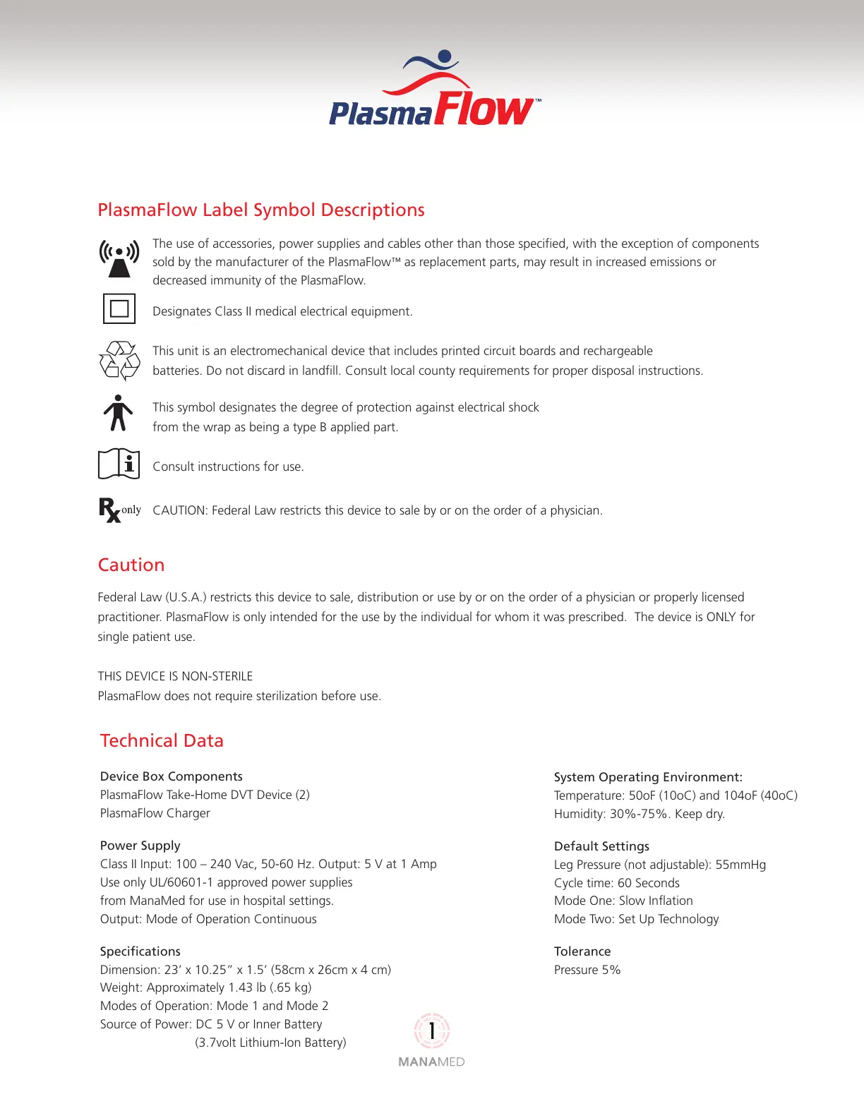 practitioner. PlasmaFlow is only intended for the use by the individual for whom it was prescribed. The device is ONLY for