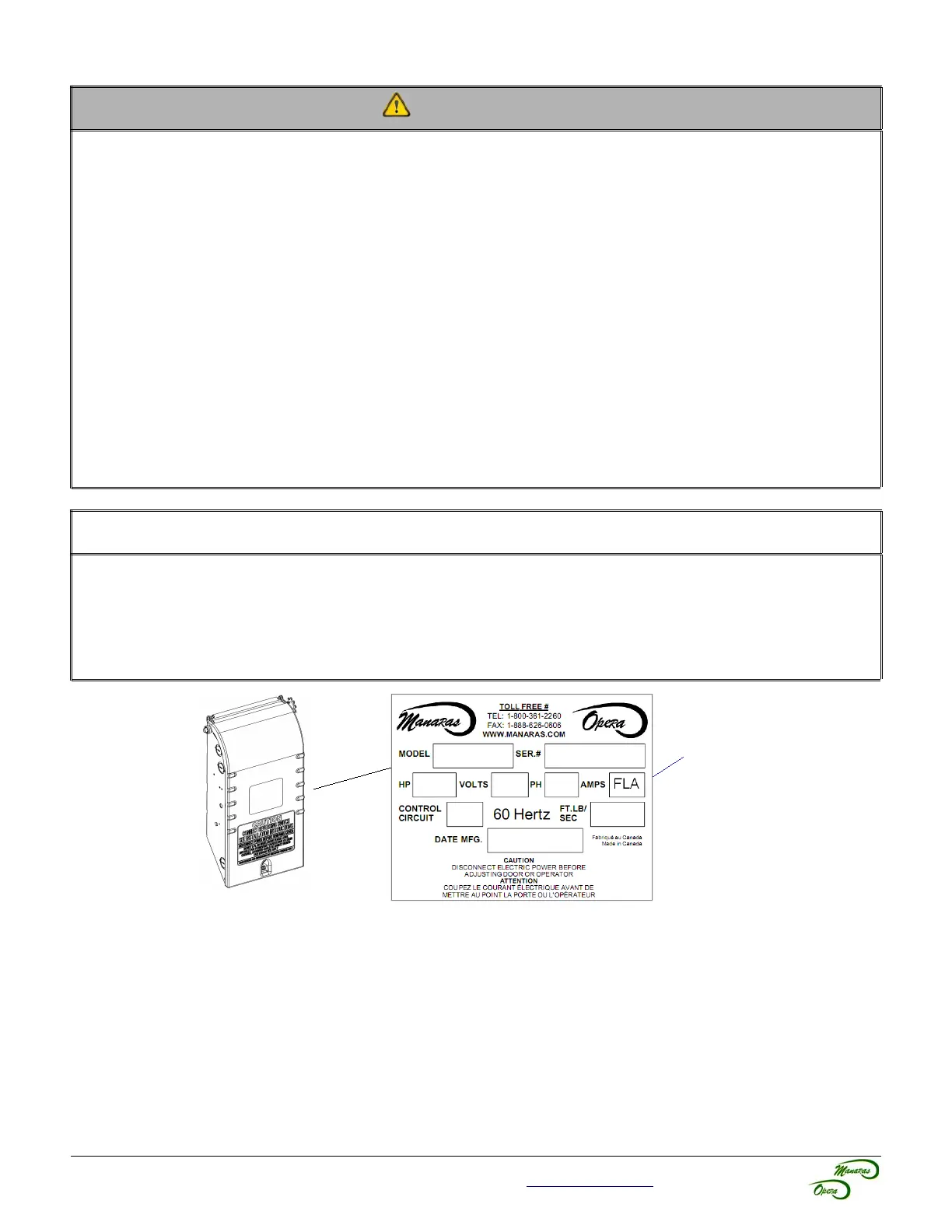 • THE OPERATOR MUST BE ADEQUATELY PROTECTED AGAINST OVERCURRENT AND SHORT-