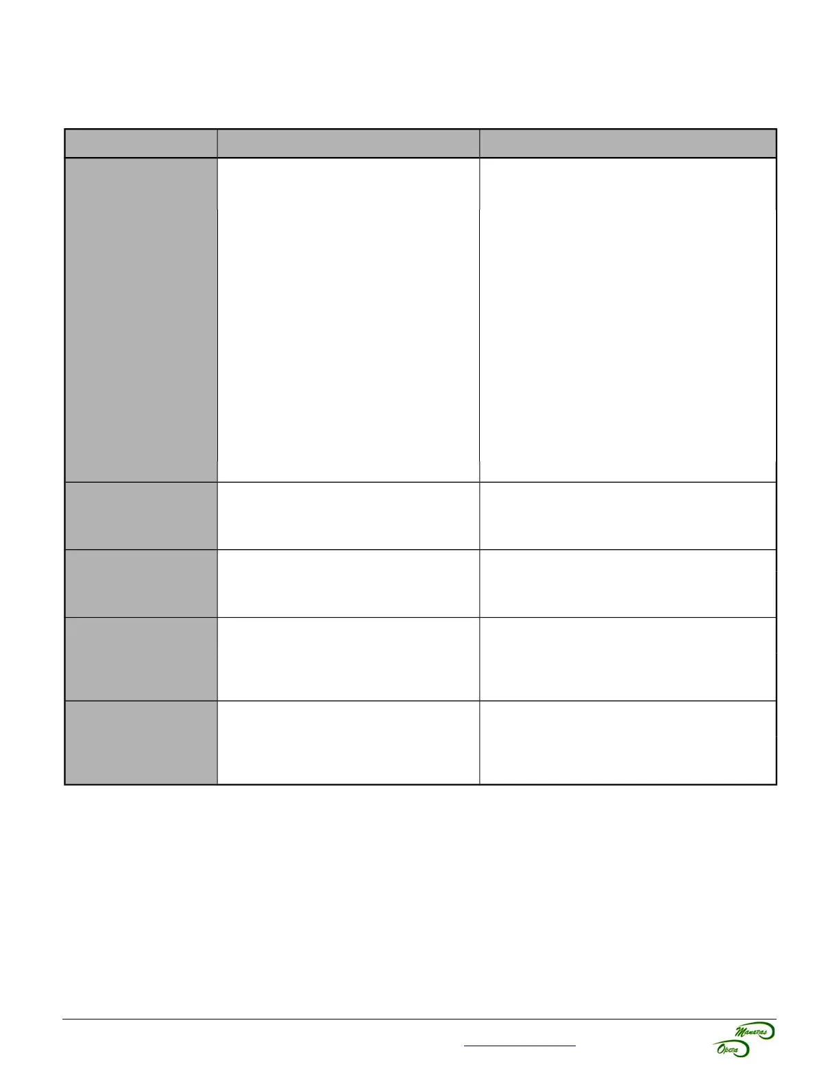 Manaras Opera-H - Troubleshooting Guide