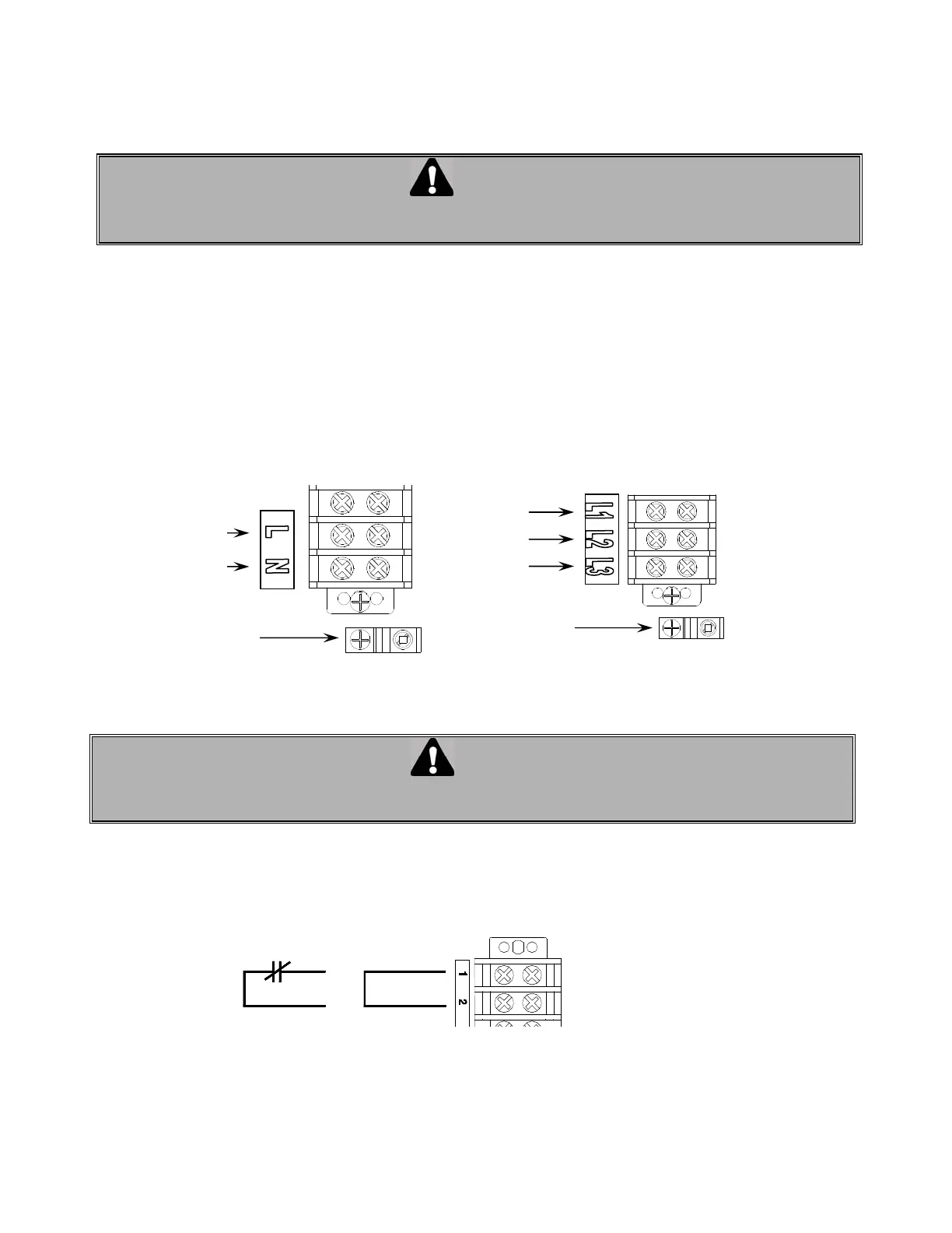 • For three phase operators, connect the power supply to terminals L1, L2 and L3 on the main terminal strip.