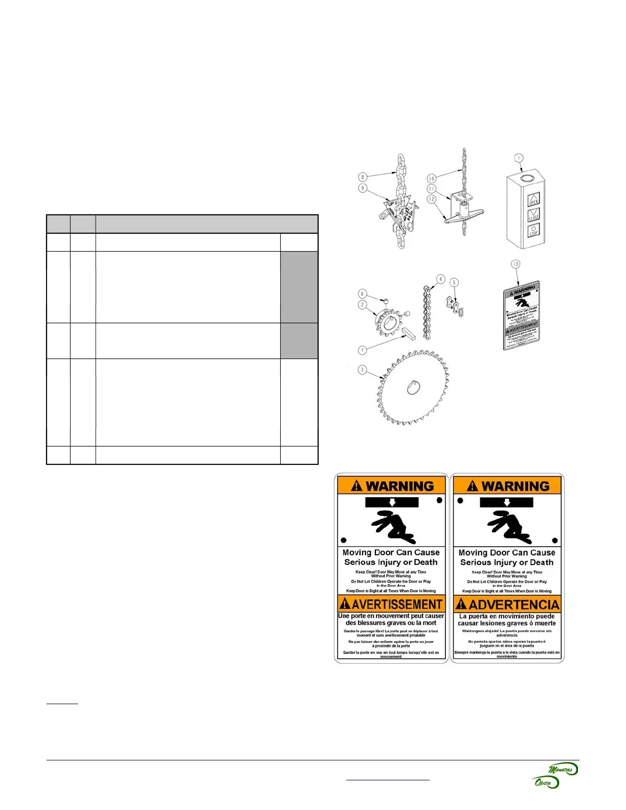 NOTE: Install the Entrapment Warning Placard (shown in Figure 4), next to the control station, visible in the area of
