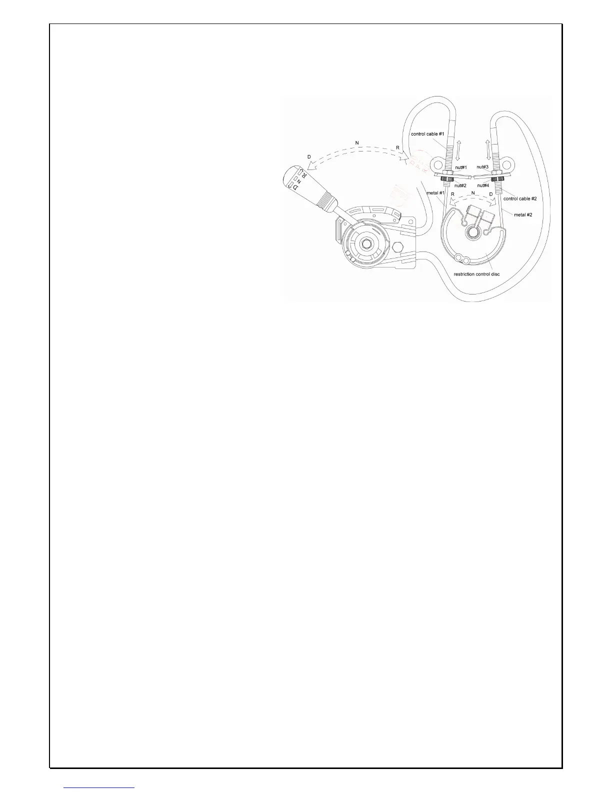 e. Loosen adjustment nuts #3 and #4, pulling the cable housing to draw the #2 control cable tight.