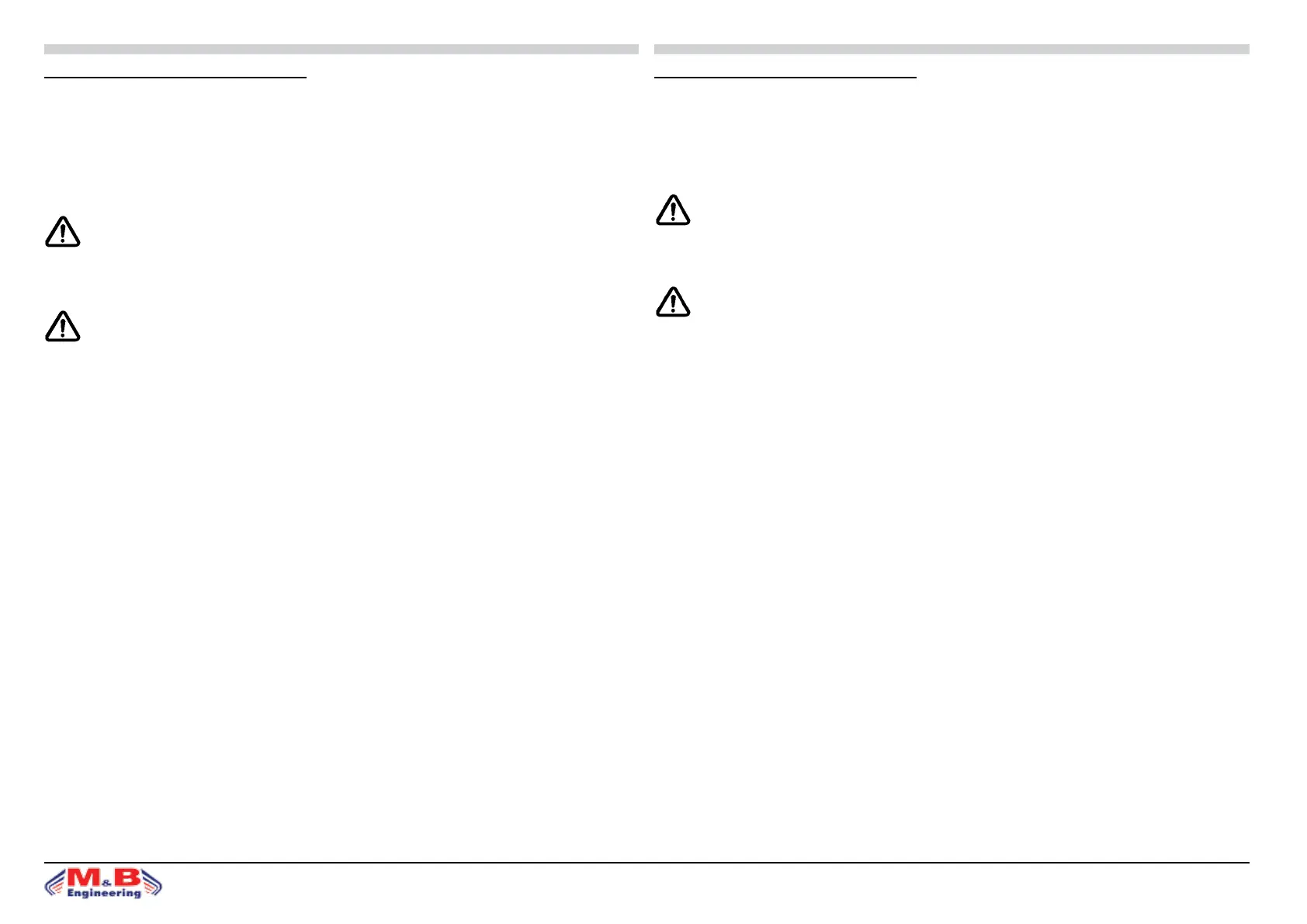 • IN OGNI CASO RIVOLGERSI AL SERVIZIO ASSISTENZA DEL RIVENDITORE AUTORIZZATO DELLE ATTREZZATURE M&B. PER