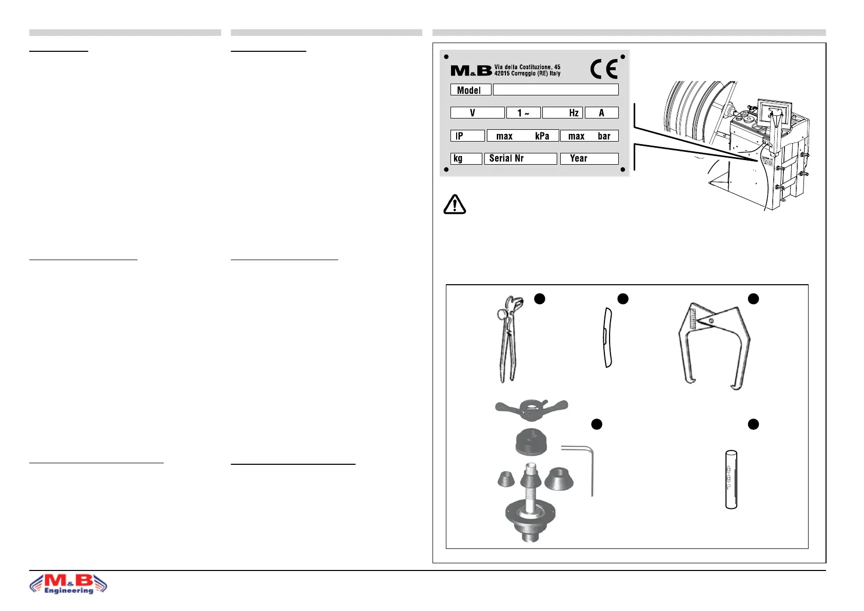ATTENTION: Please complete the facsimile with the data written on the machine plate.