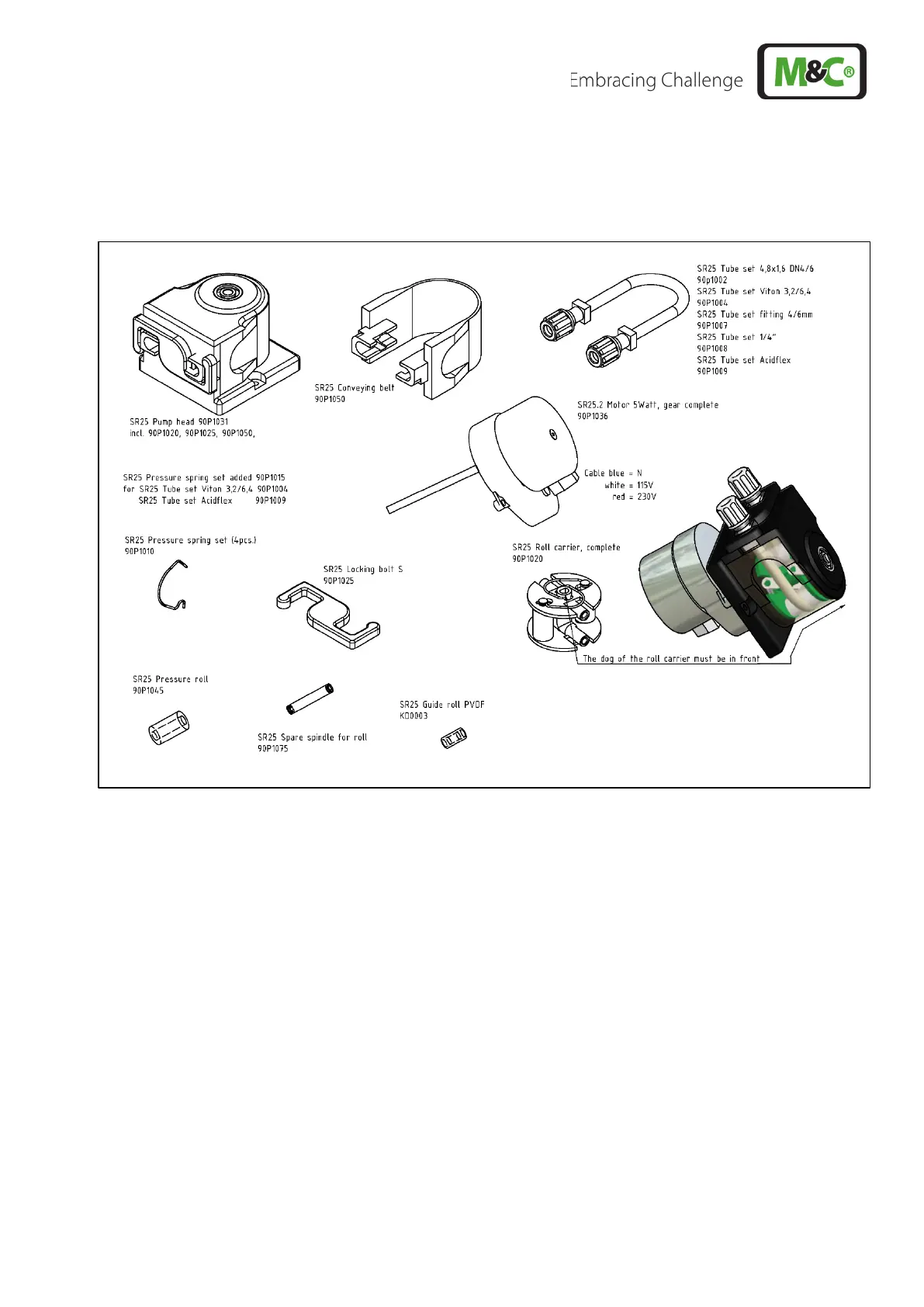 M&C CSS Series - Maintenance of the Built-In Peristaltic Pump Type SR 25.2; Figure 19 Components of the Peristaltic Pump SR25.2