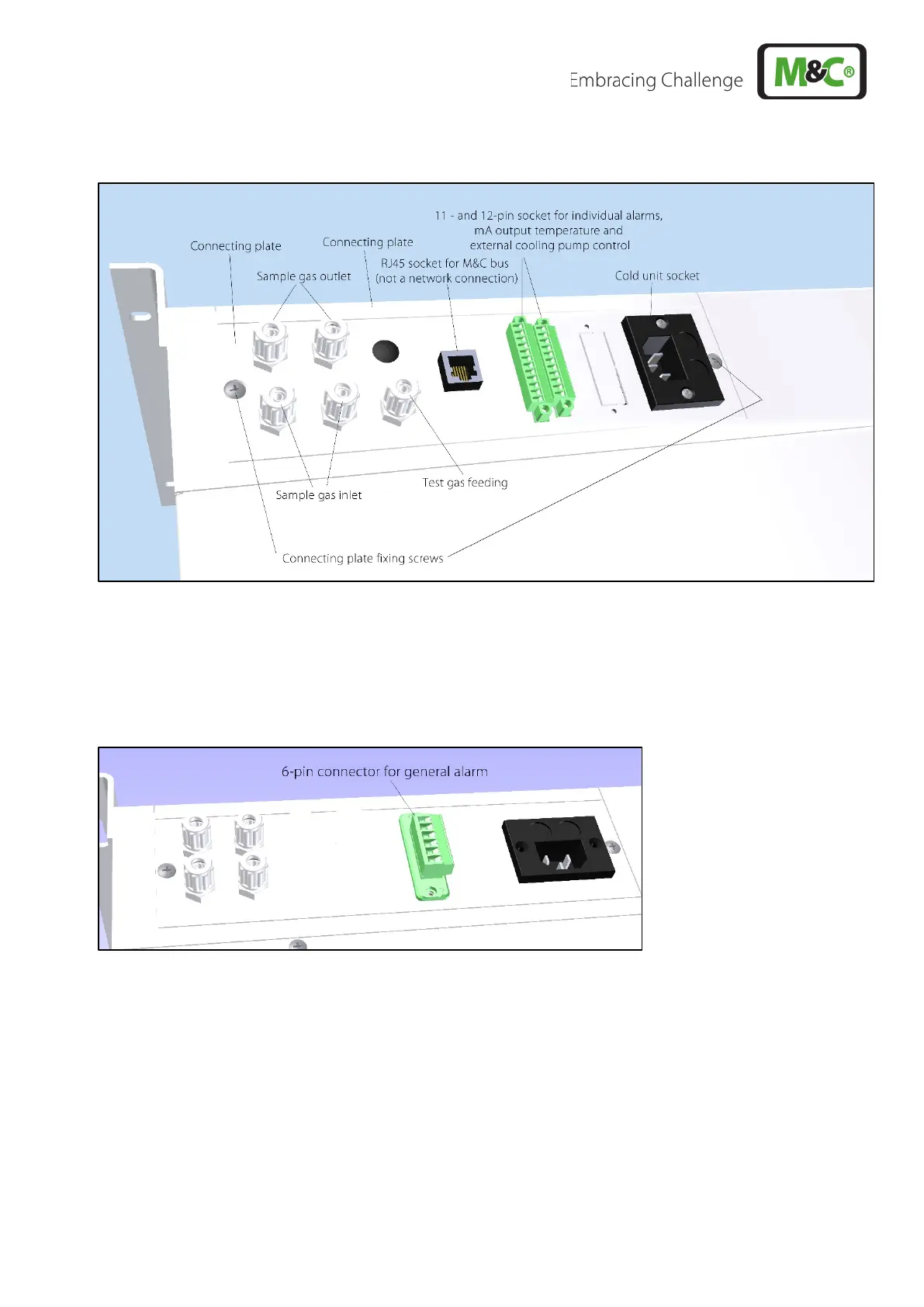 output cooler temperature and external sample gas pump control, a 6-pin connector may also be present
