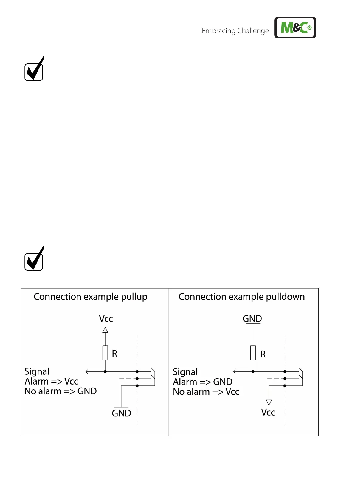 On X2 connector pin 7+9, an indicator can be connected that alarm messages are present (red LED