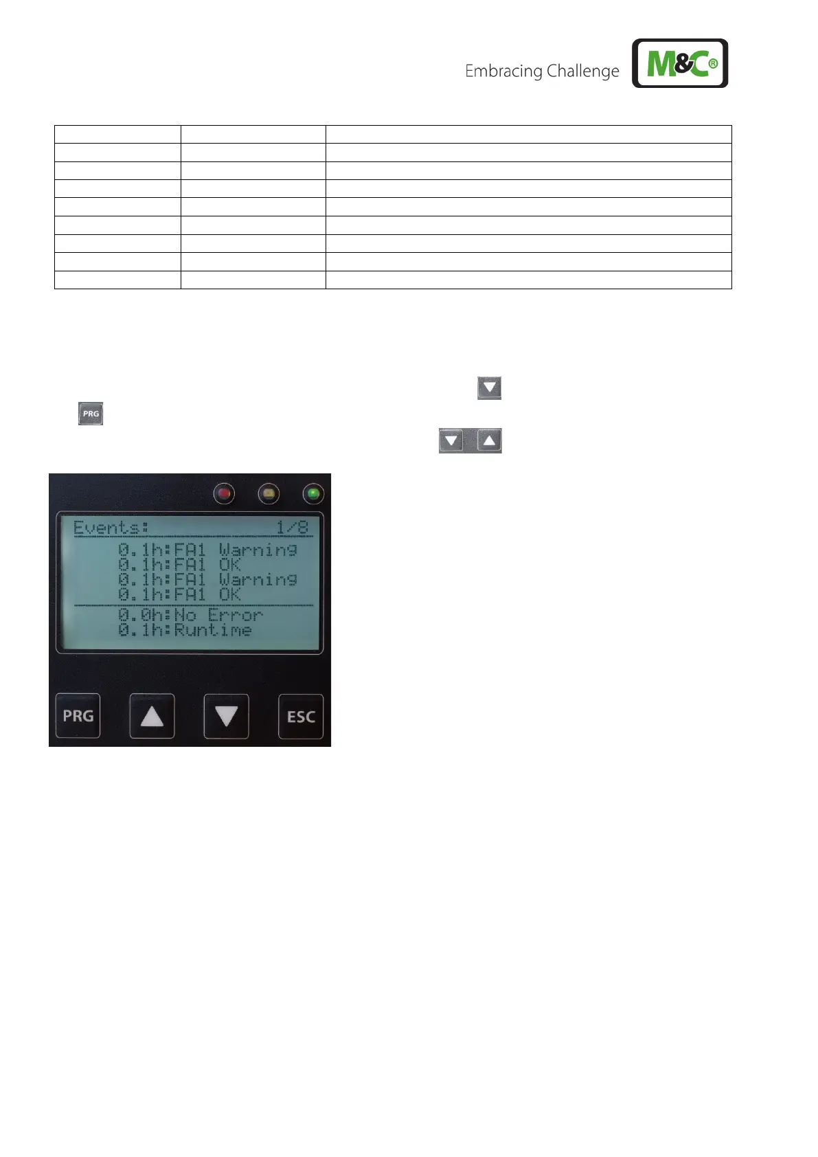 key, the event list appears in which the last 32 error messages and warnings are listed on 8 pages.