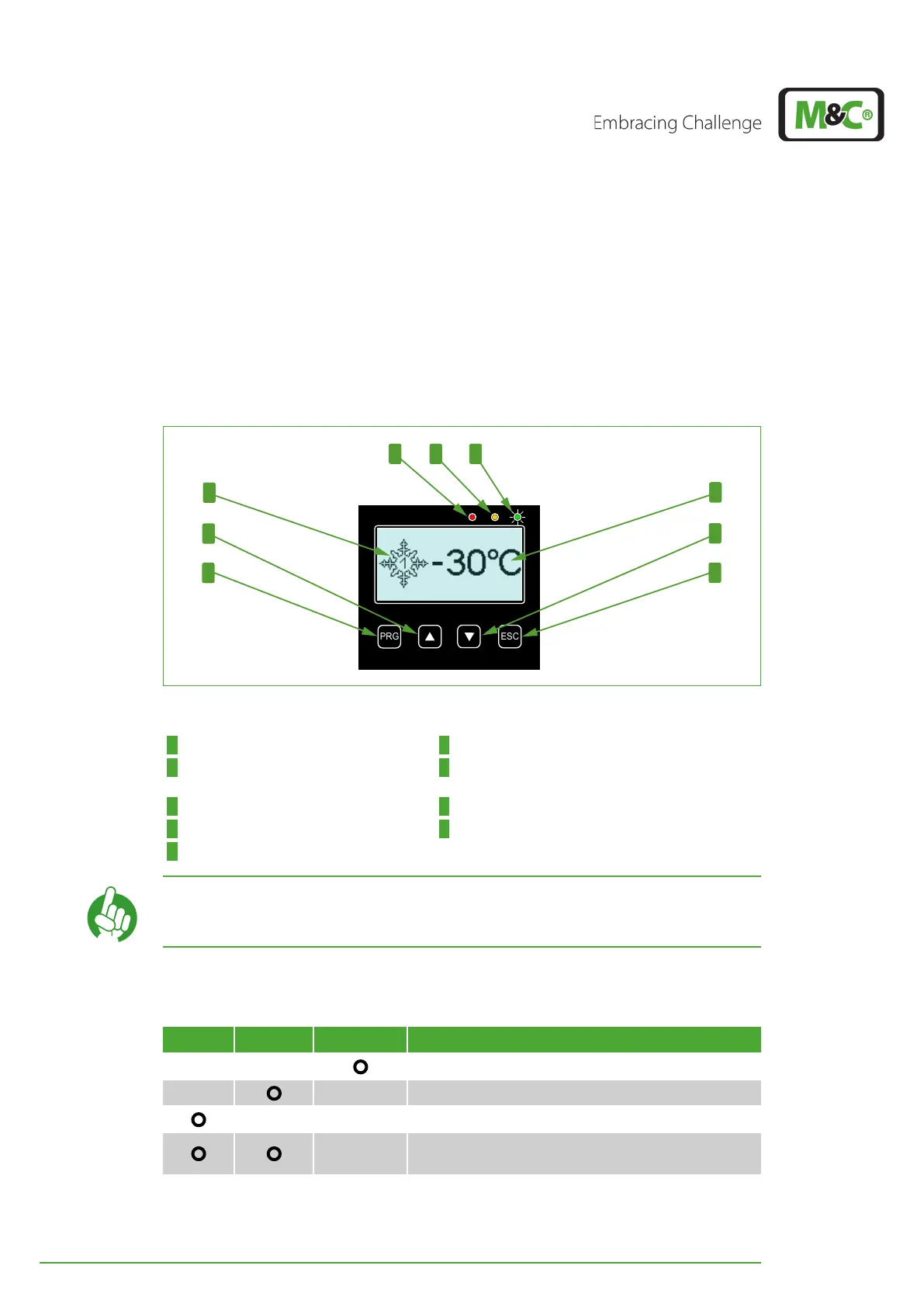 3 Green LED is on (OK) 4 Snow-flake-symbol with ‘1’ in its center (Tempera-