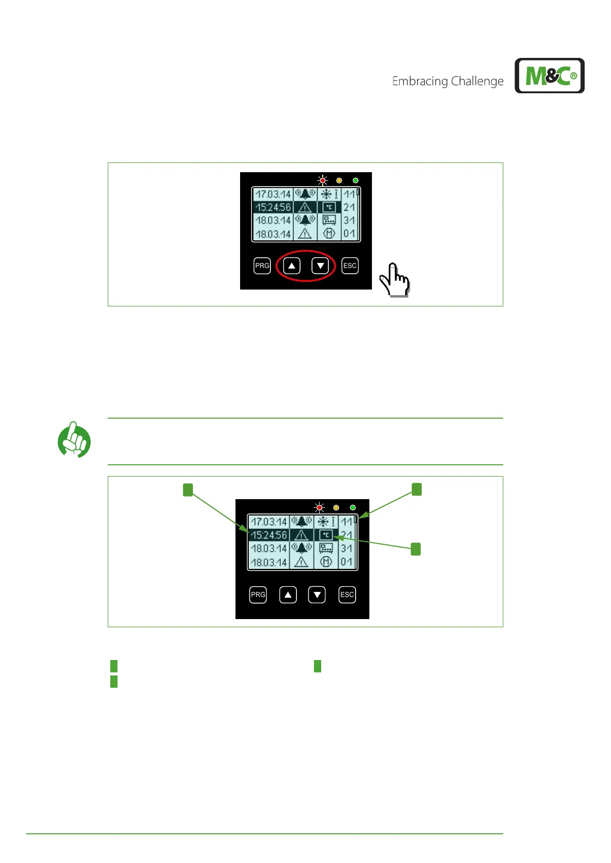 The highlighted line will show the time instead of the date of the selected alarm or warn-