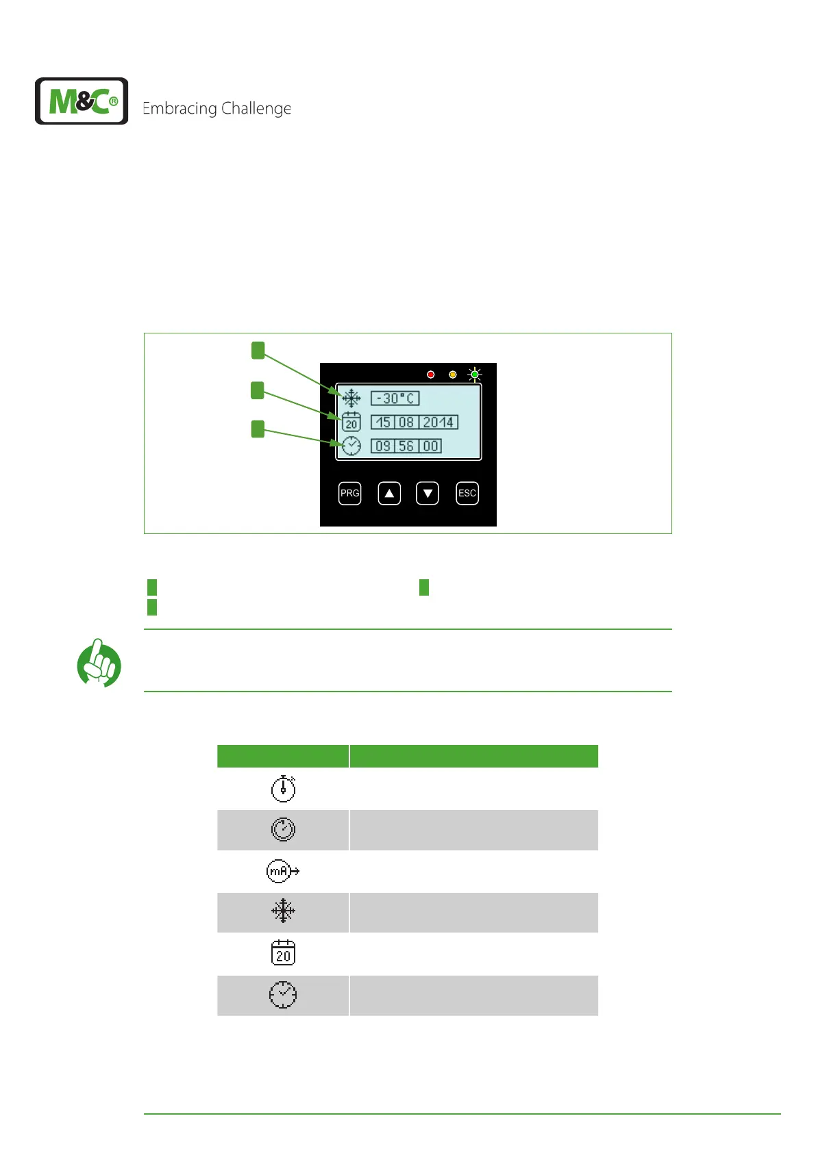 1 Line 1: Deep-cooling temperature 2 Line 2: Current date