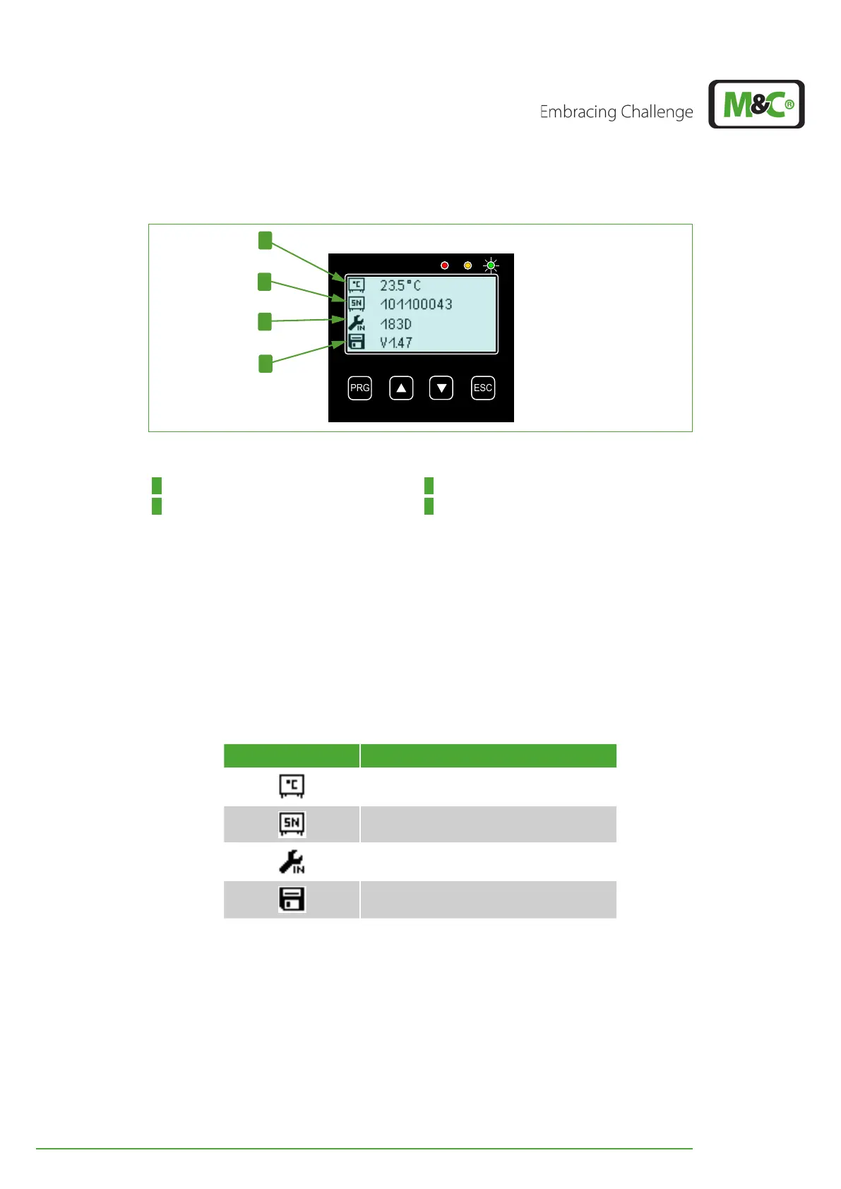 1 Line 1: Device temperature 2 Line 2: Serial number of the display controller