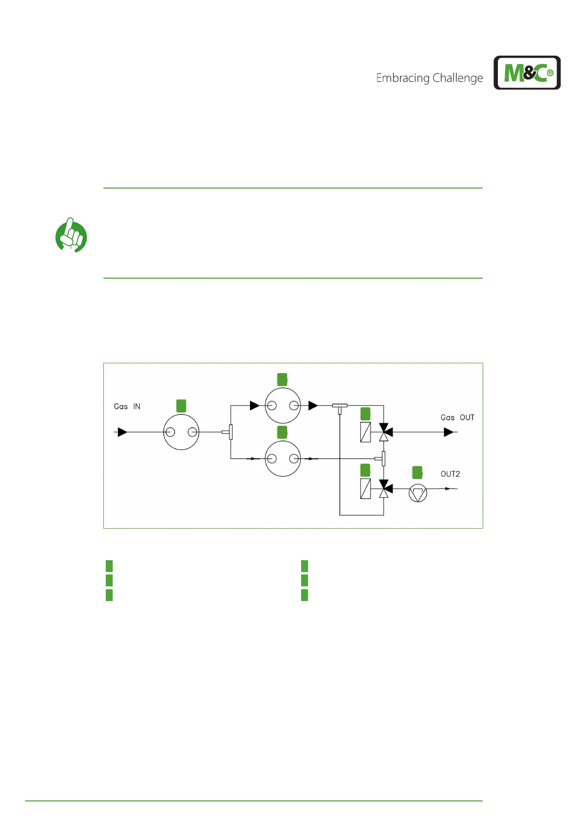 valve 2 to provide permanently and slowly (0.3 l/h) fresh sample gas to the inactive cooling