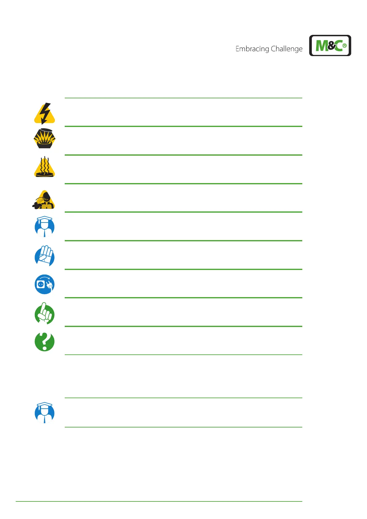 Don‘t repair or maintain this product without M&C‘s specific maintenance- and service