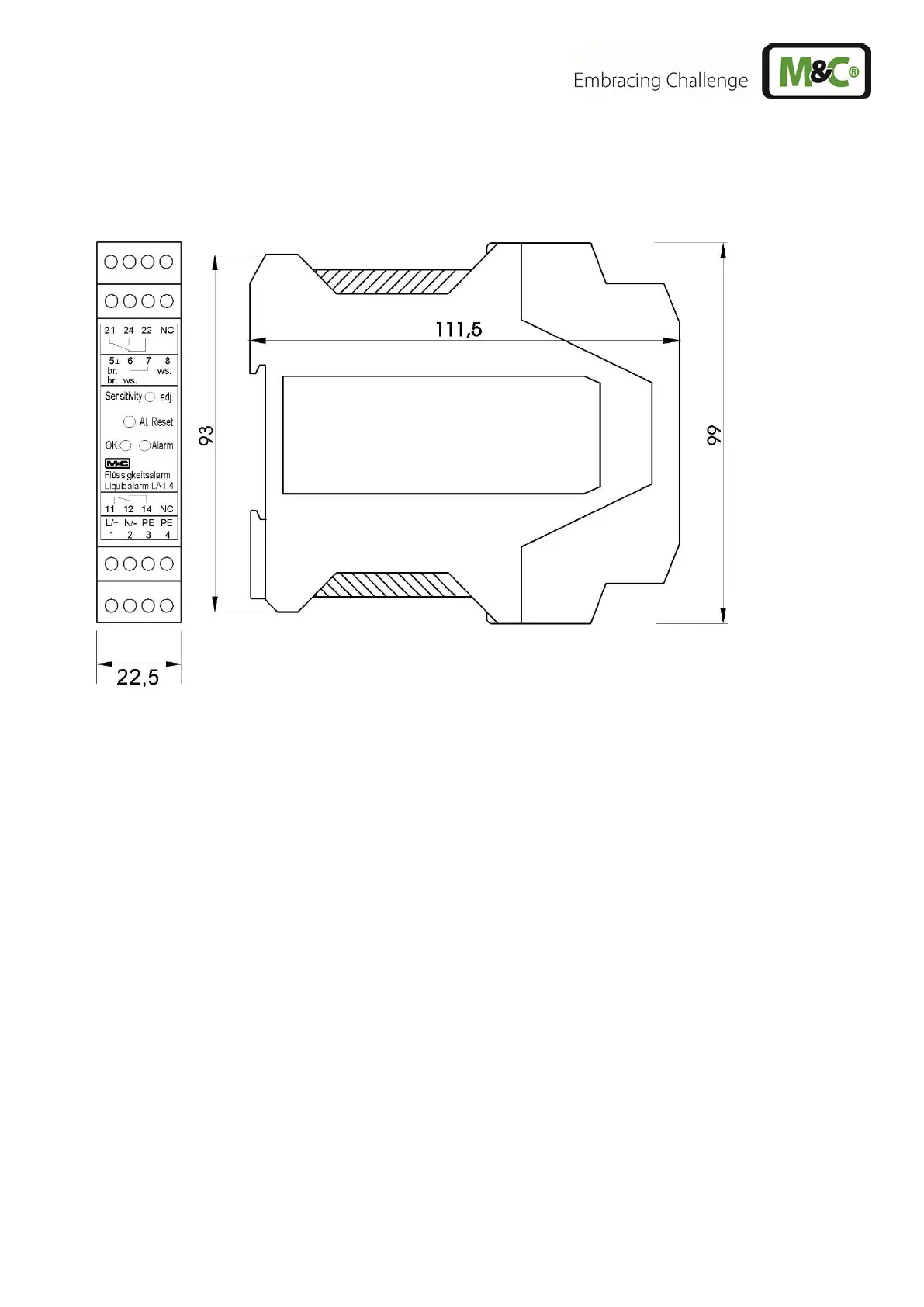 M&C LA Series - Figure 6 Electrical Connection and Dimensions LA1.4
