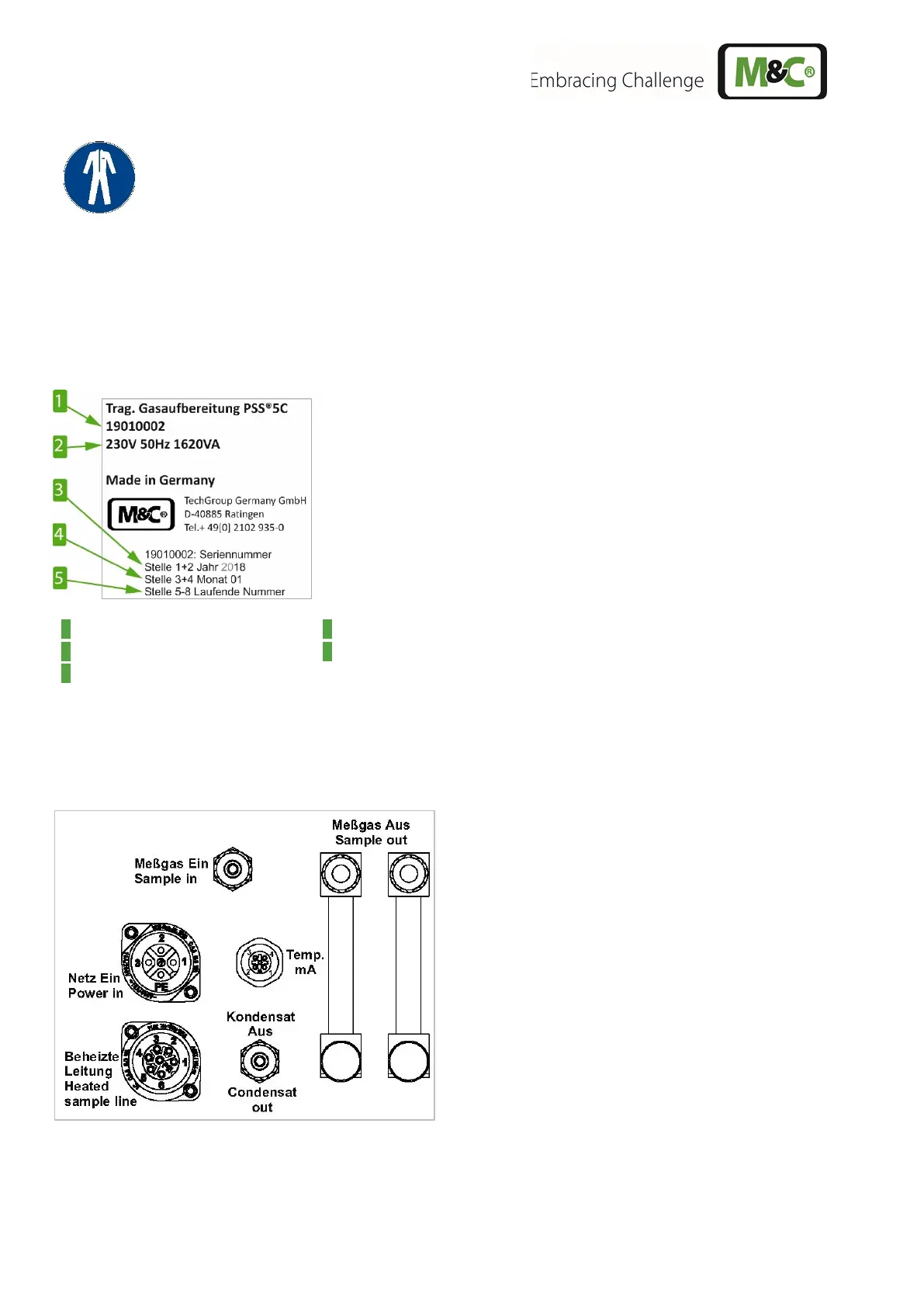 The type plate contains the product name, the serial number including explanation, electrical connection