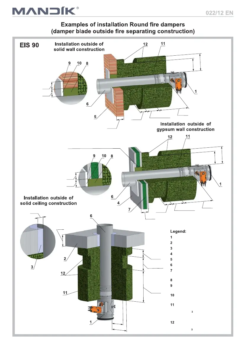 damper and fire separating construction