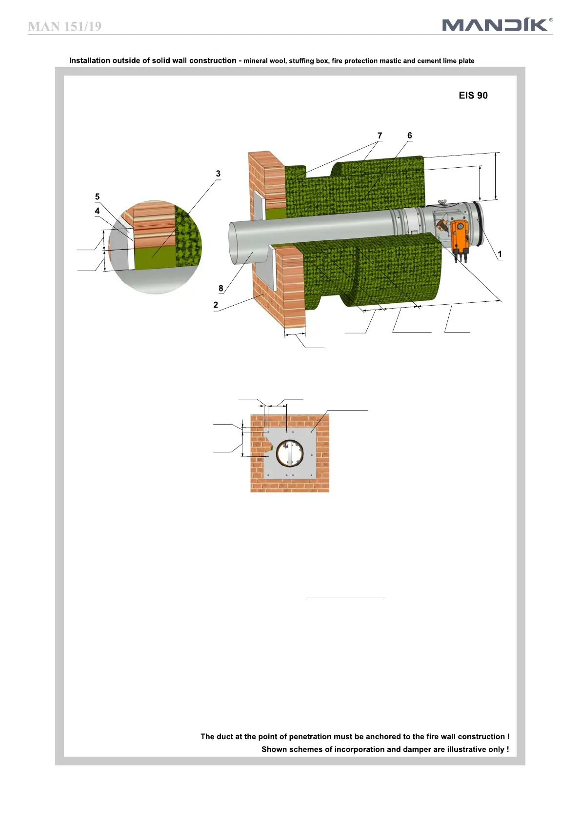 * Stuffing box, fire protection mastic, cement lime plate and