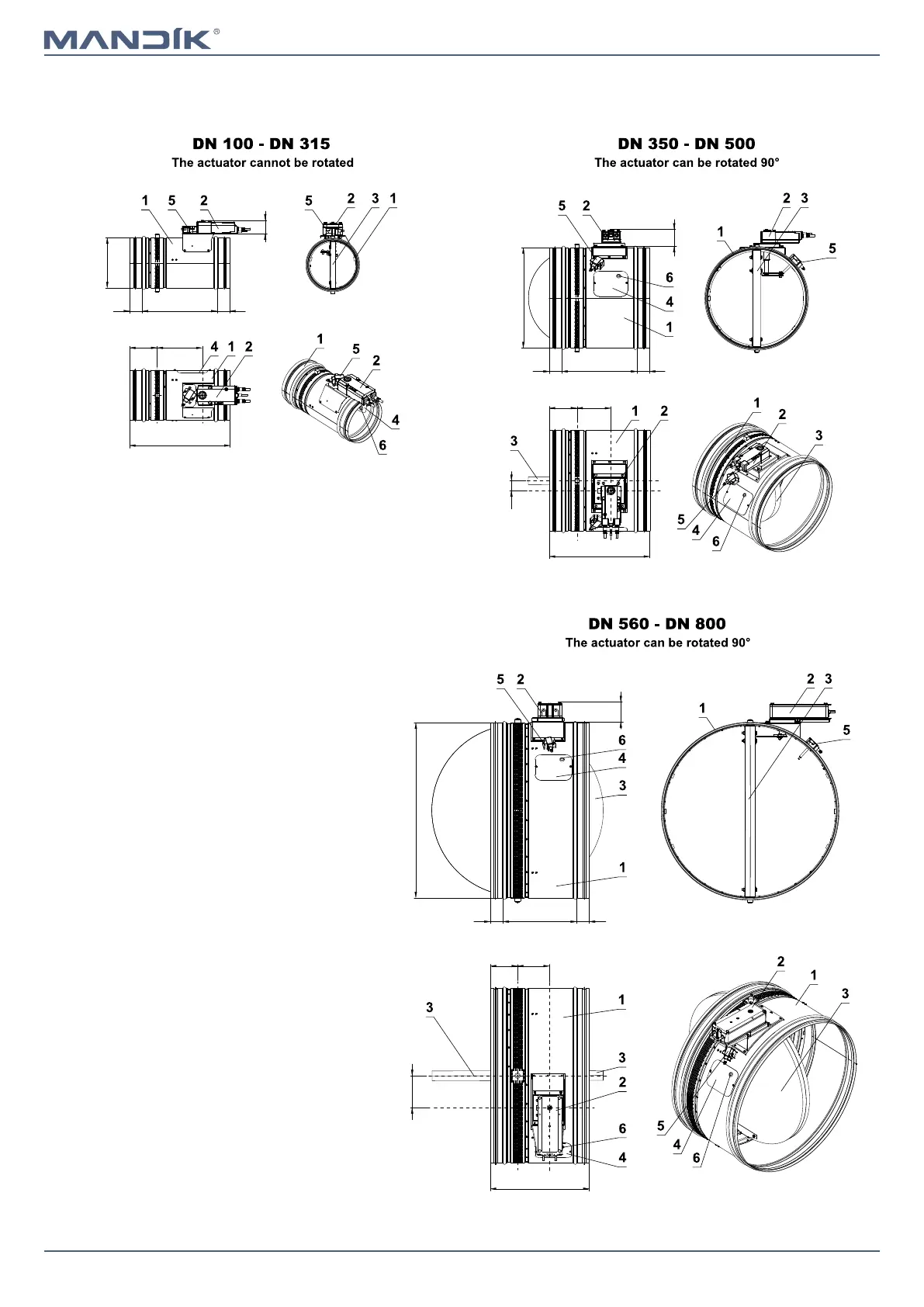 * Assignment of actuating mechanisms to individual sizes → see page 17