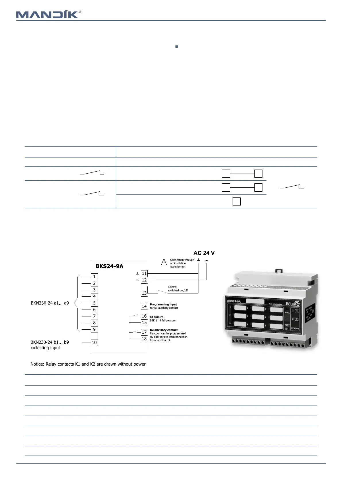 ■ K2 - the auxiliary contact - is used for signaling of the damper