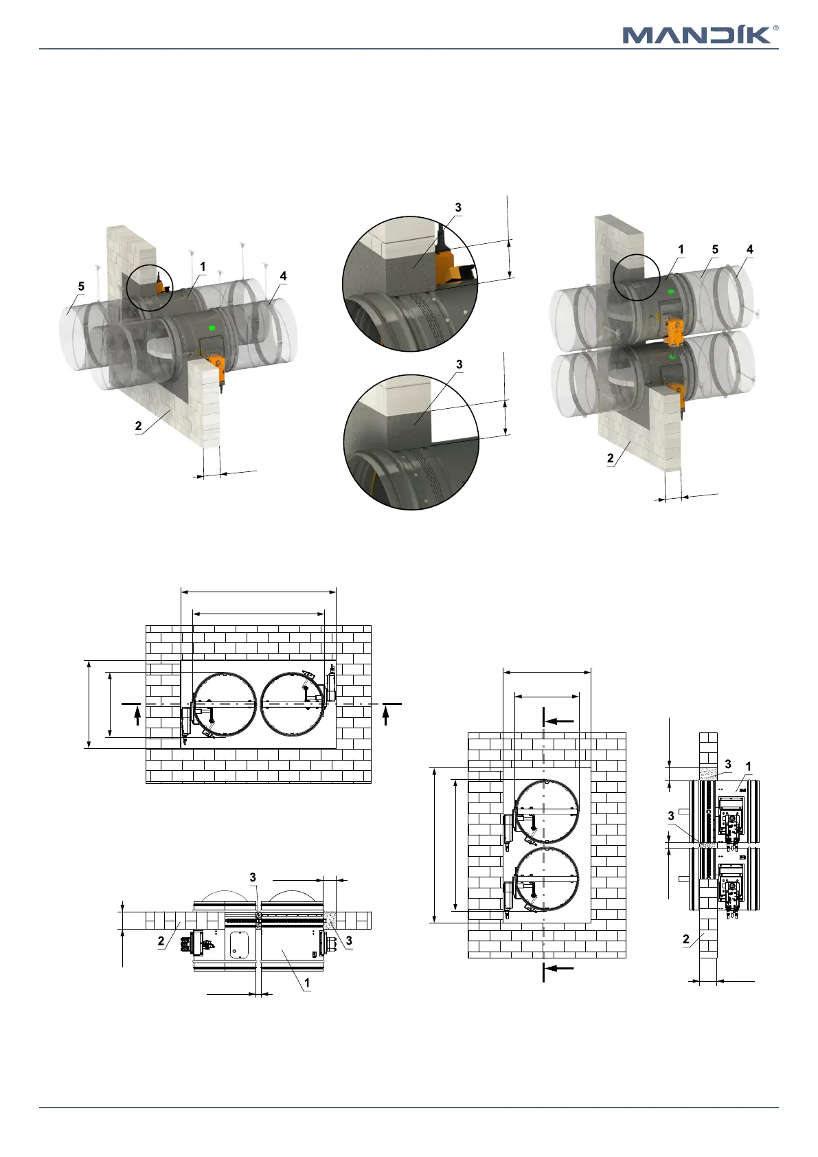 In solid wall construction - 2 dampers in one opening - mortar or gypsum