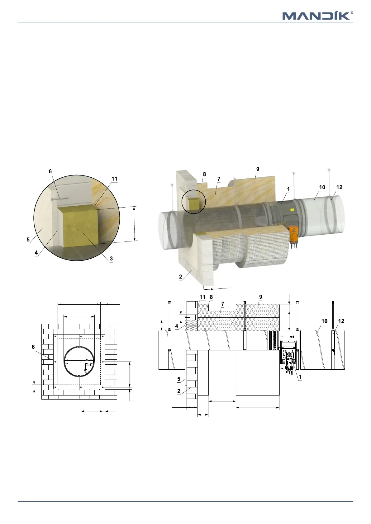 ■ Duct between fire damper and fire separating construction must be suspended by using threaded rods and mounting profiles, or another mounting system