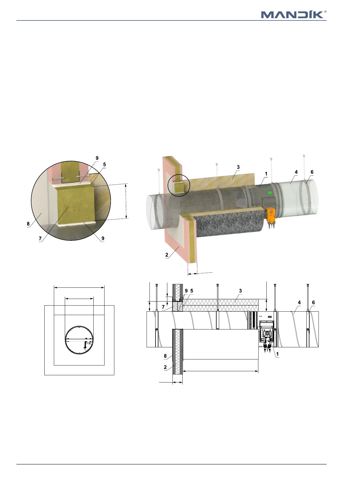 ■ Duct between fire damper and fire separating construction must be suspended by using threaded rods and mounting profiles, or another