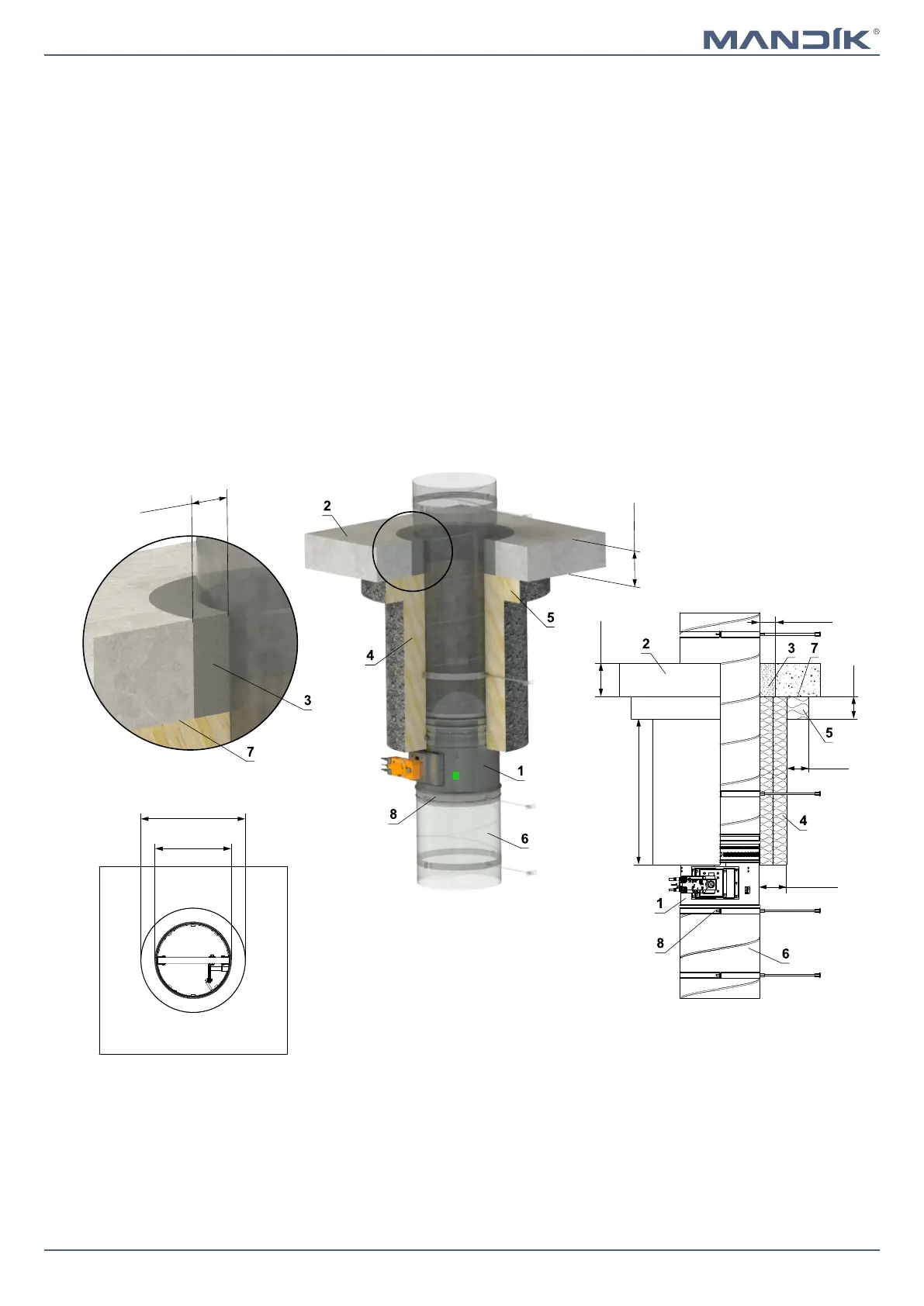 5 Insulation collar - min. th. 80 mm (System ISOVER Ultimate Protect Slab 4.0 Alu1) - glued (pos. 7) and fixed with screws to the ceiling construction
