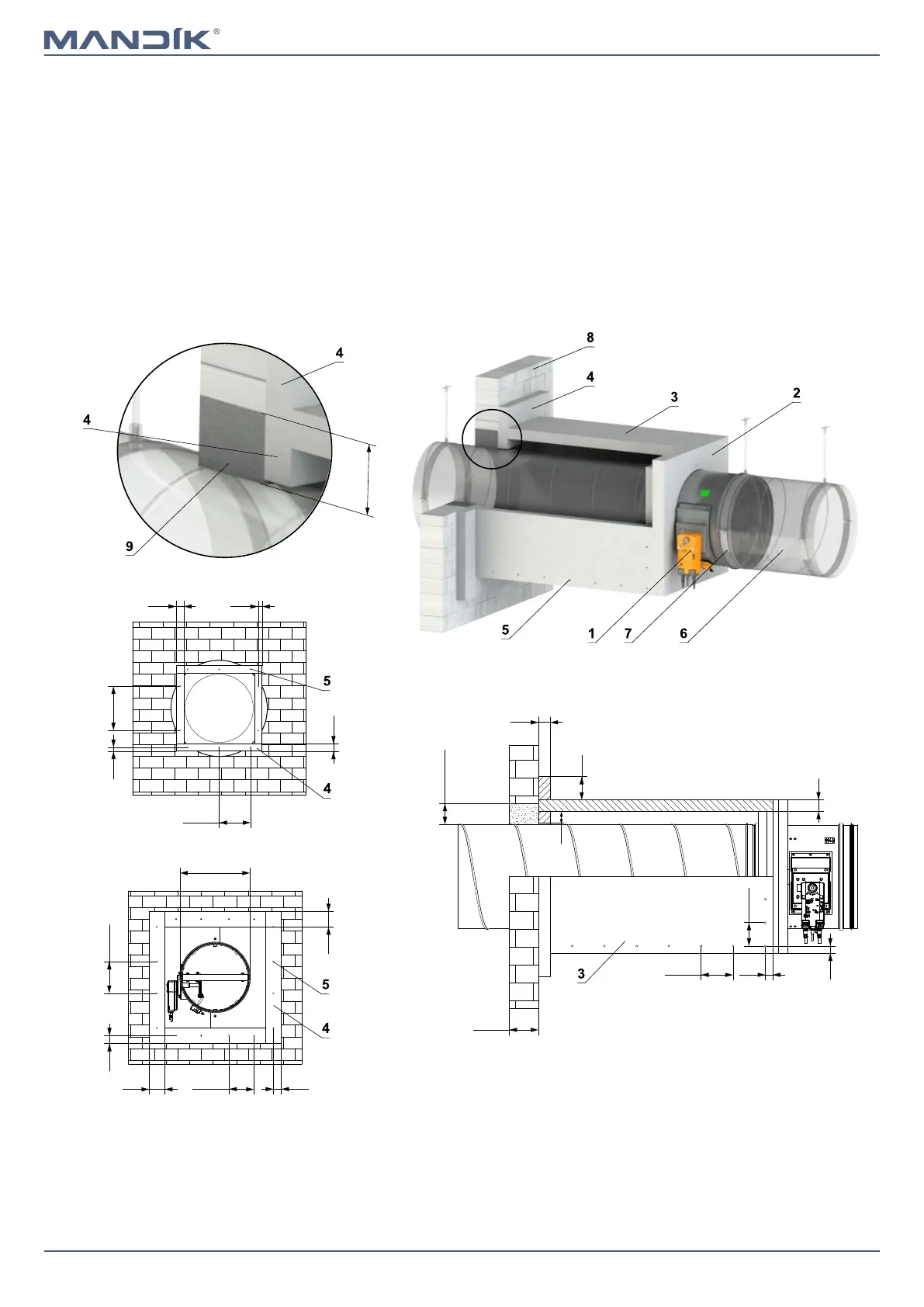 ■ Minimum and maximum distance between the wall and fire damper is unlimited