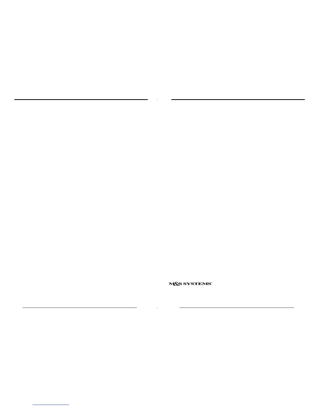returning any product to M&S SYSTEMS. Send this product freight pre-paid and insured to