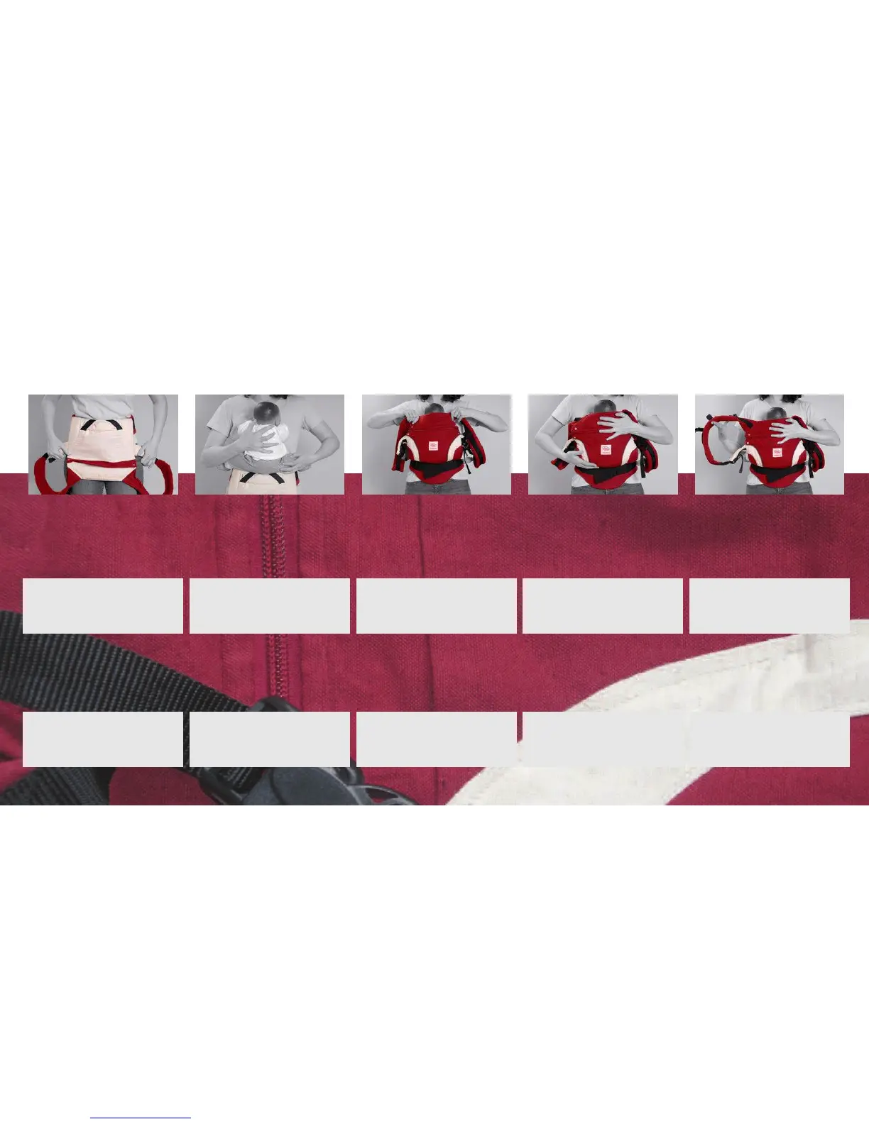 Front Carry without newborn insert • Porter sur le ventre sans le reducteur • Pocisión frontal, estilo mochila, sin reductor