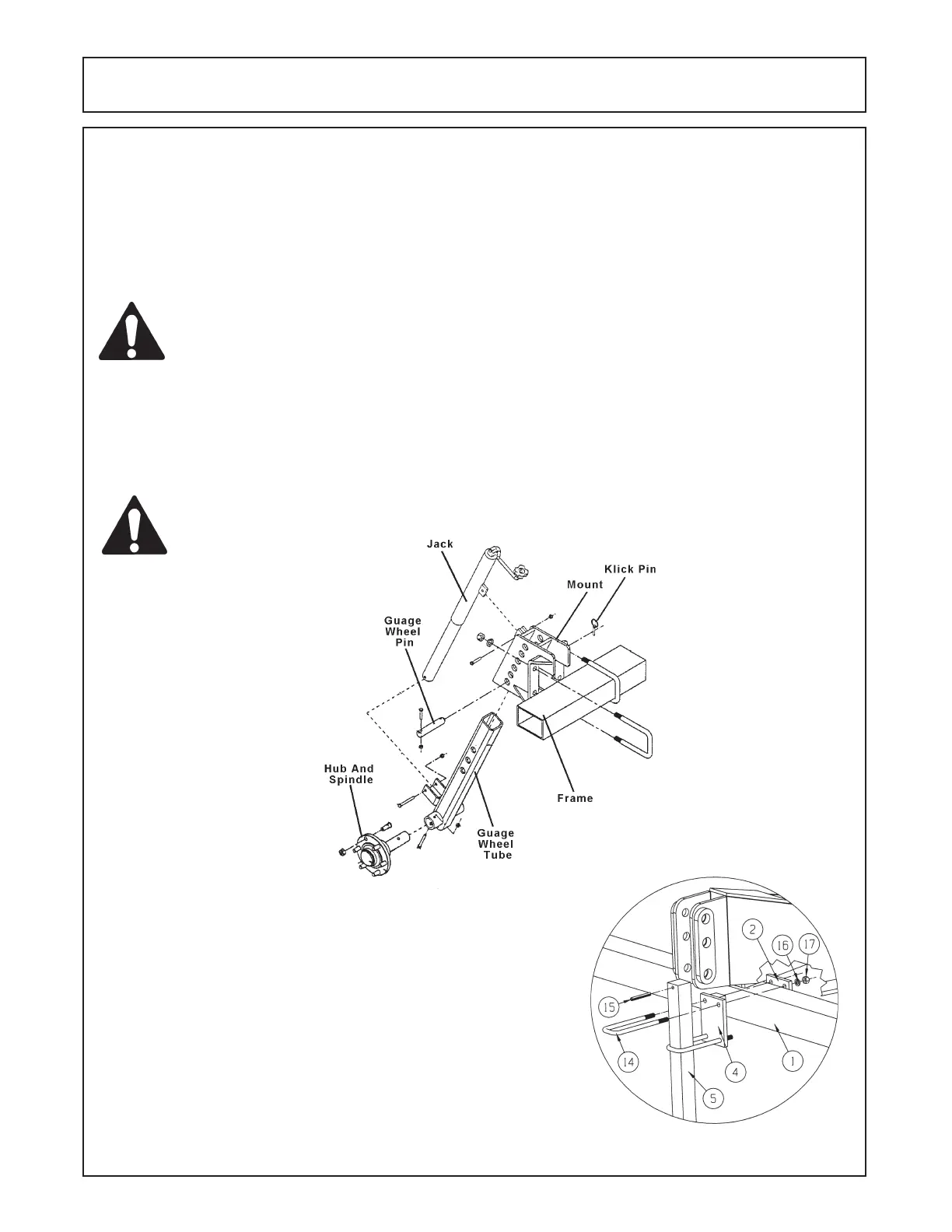 CAUTION! The Jack is not intended to carry the Gauge Wheel load during operating. Failure to install the