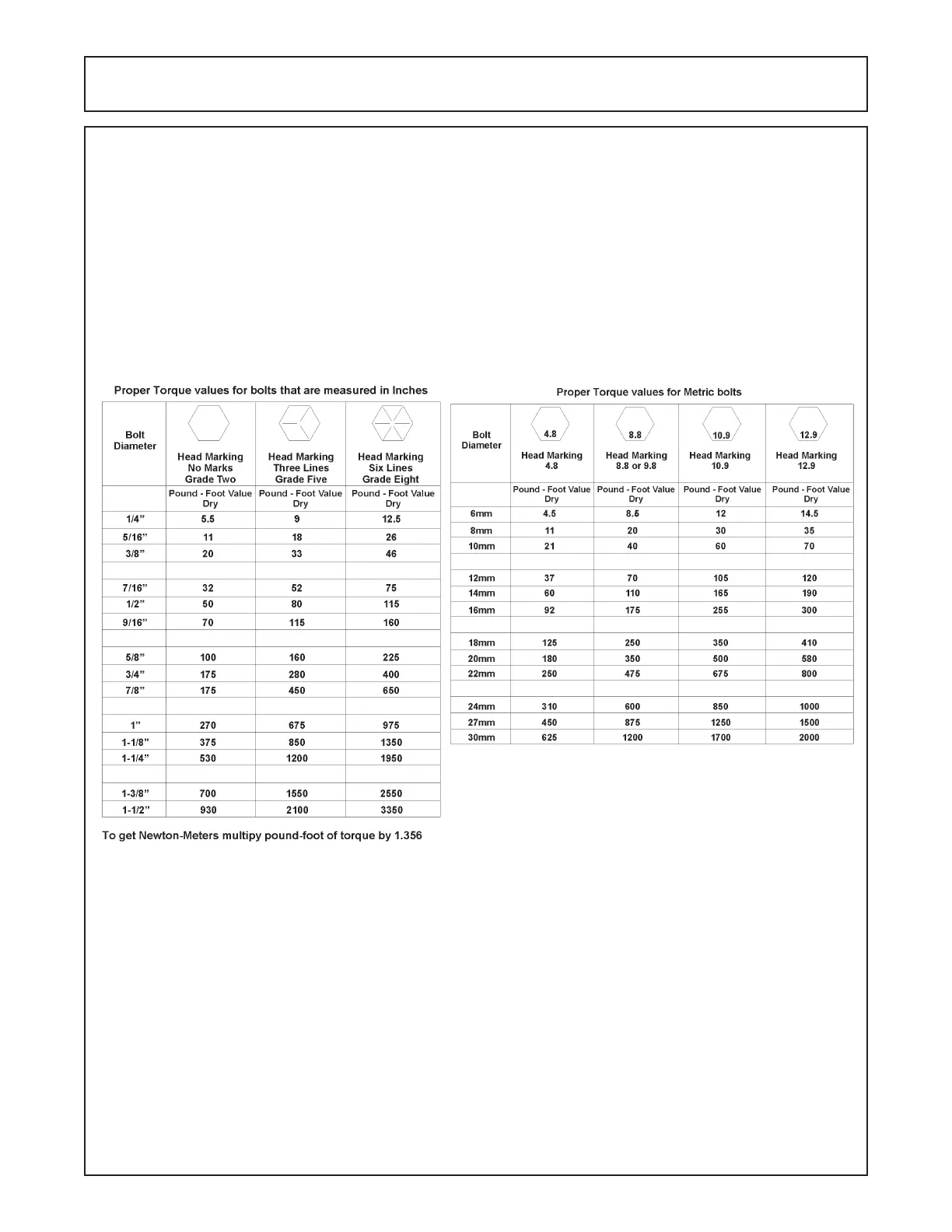 chart to determine the grade of bolts and the proper torque except when specific torque values are assigned in