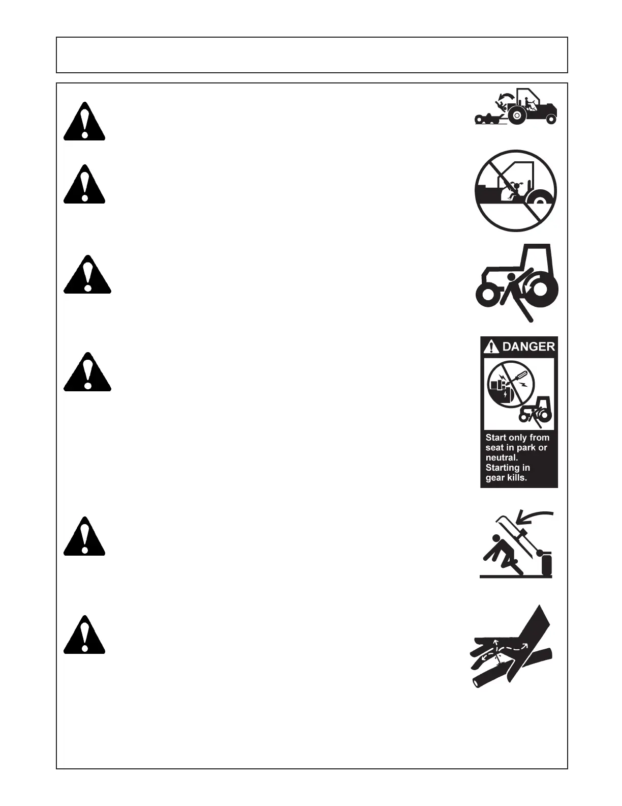 Start tractor only when properly seated in the Tractor seat. Starting a