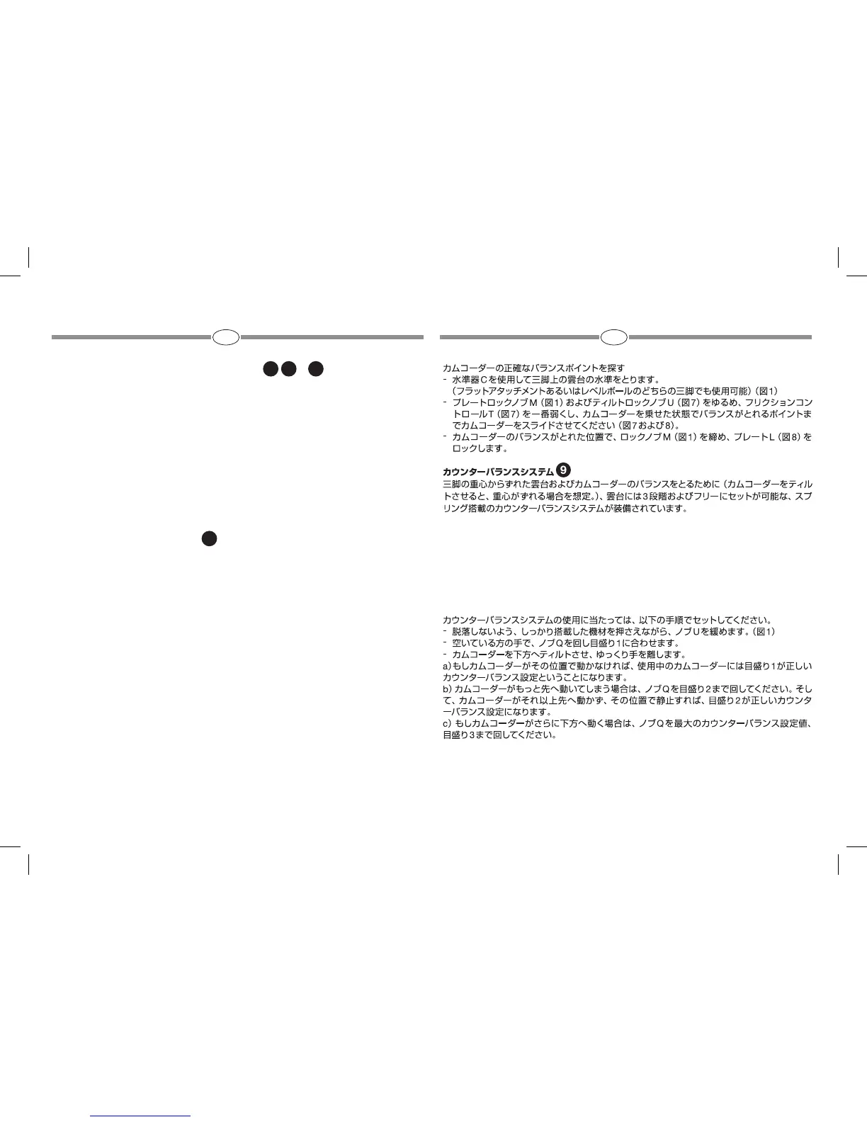 カウンターバランスシステムは標準的なカムコーダーの重量に対応するように設計されていますが、雲台自体