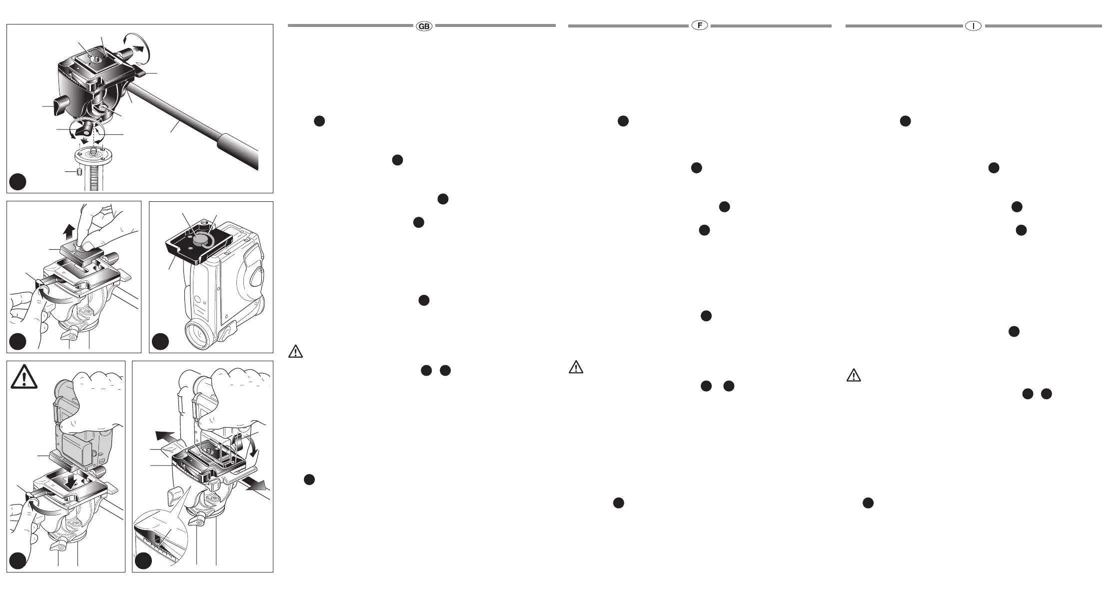 The top plate on Manfrotto tripods are equipped with three set screws “F” which clamp