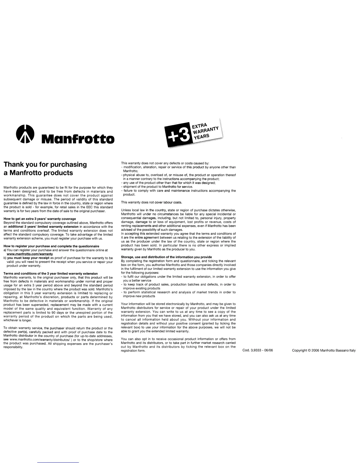 see www.manfrotto.com/warranty/distributos/ ) or to the shop/store where