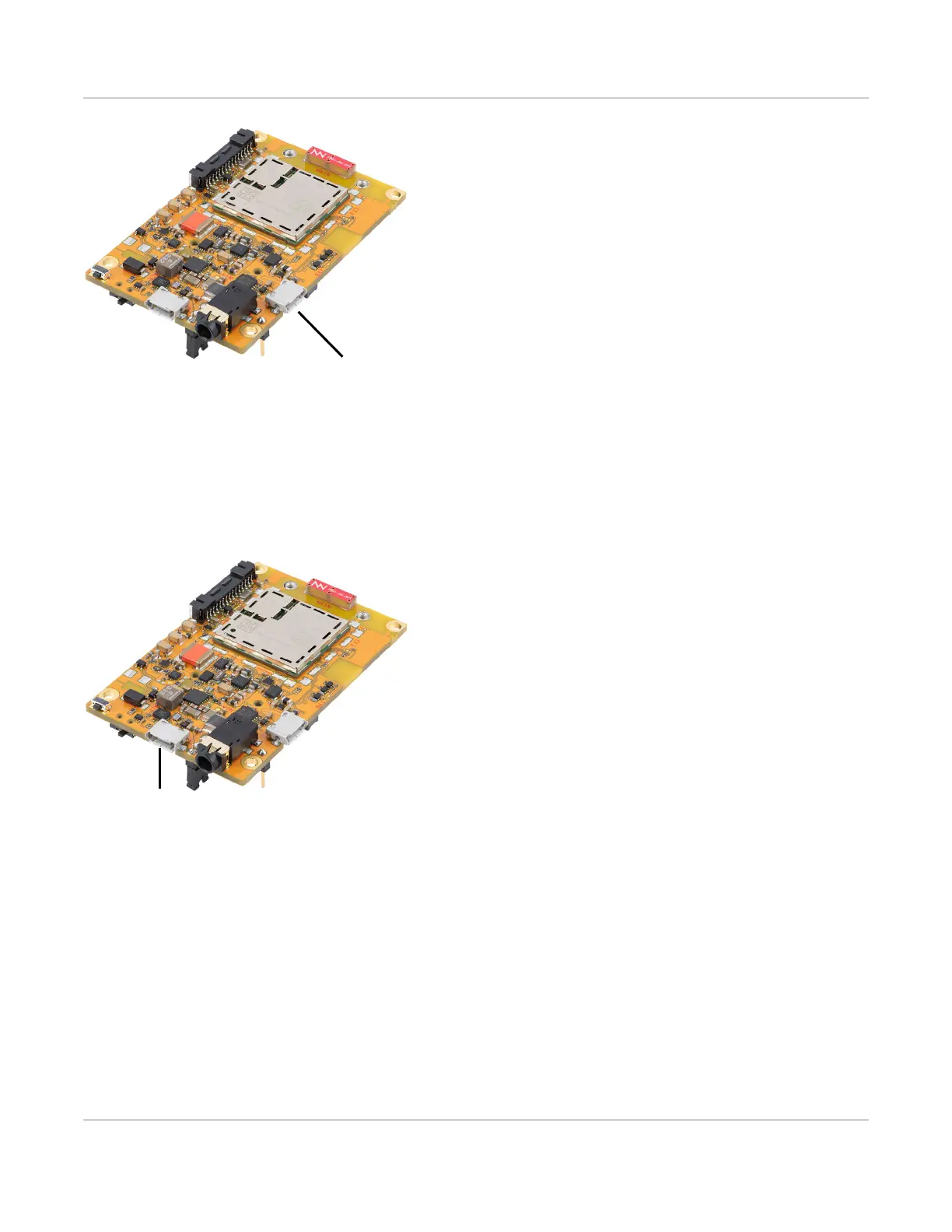 The mangOH Yellow includes a micro-USB 2.0 connector (CN802) for access to the CF3 module’s interfaces